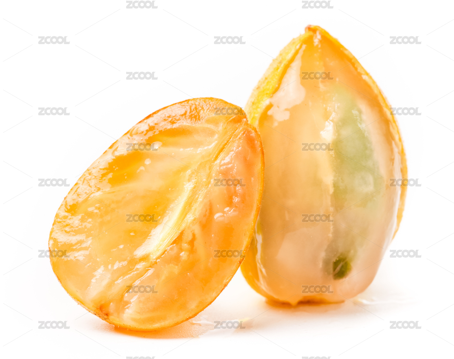 兩個切開的立起來的黃皮果