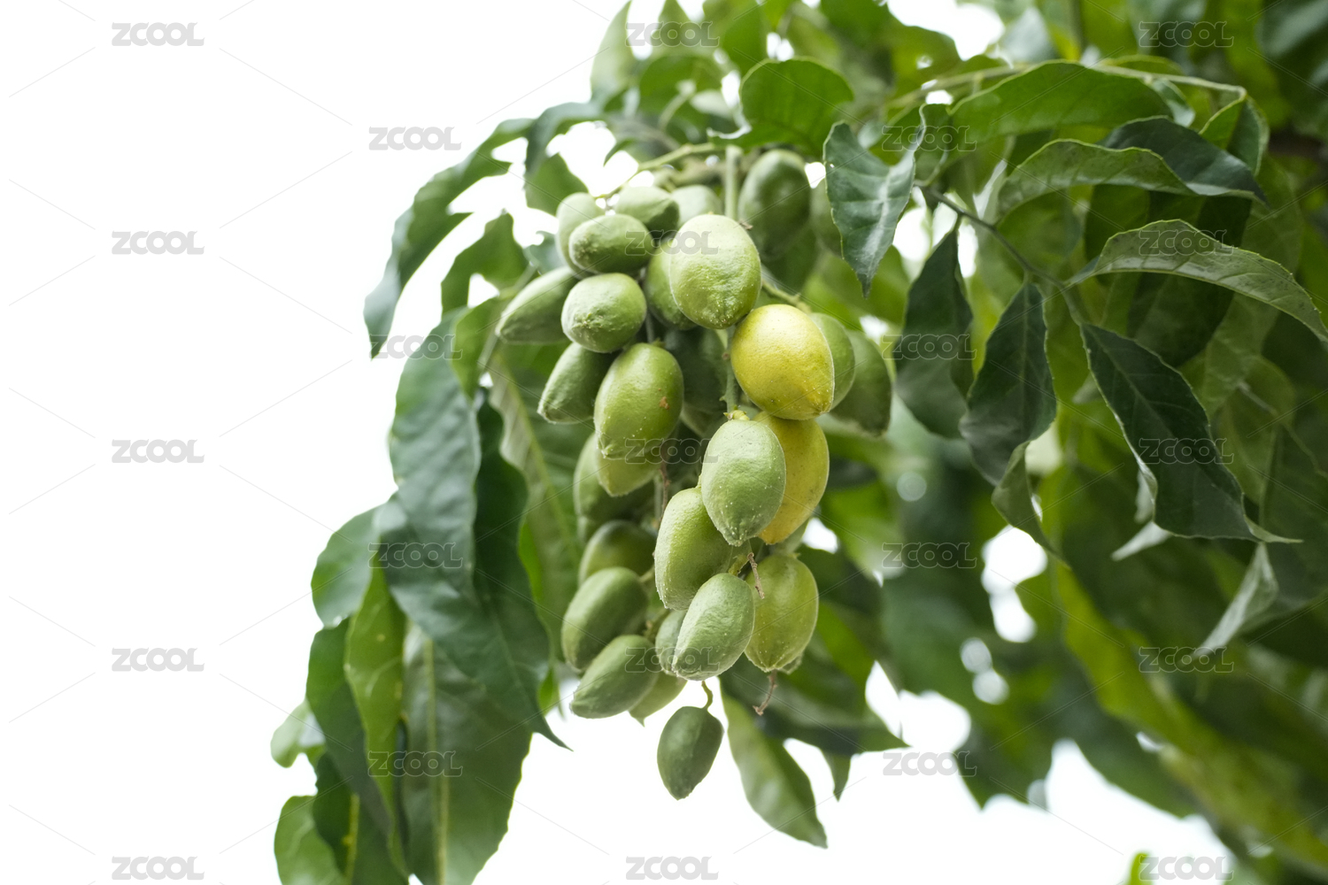 枝頭上未成熟的黃皮果