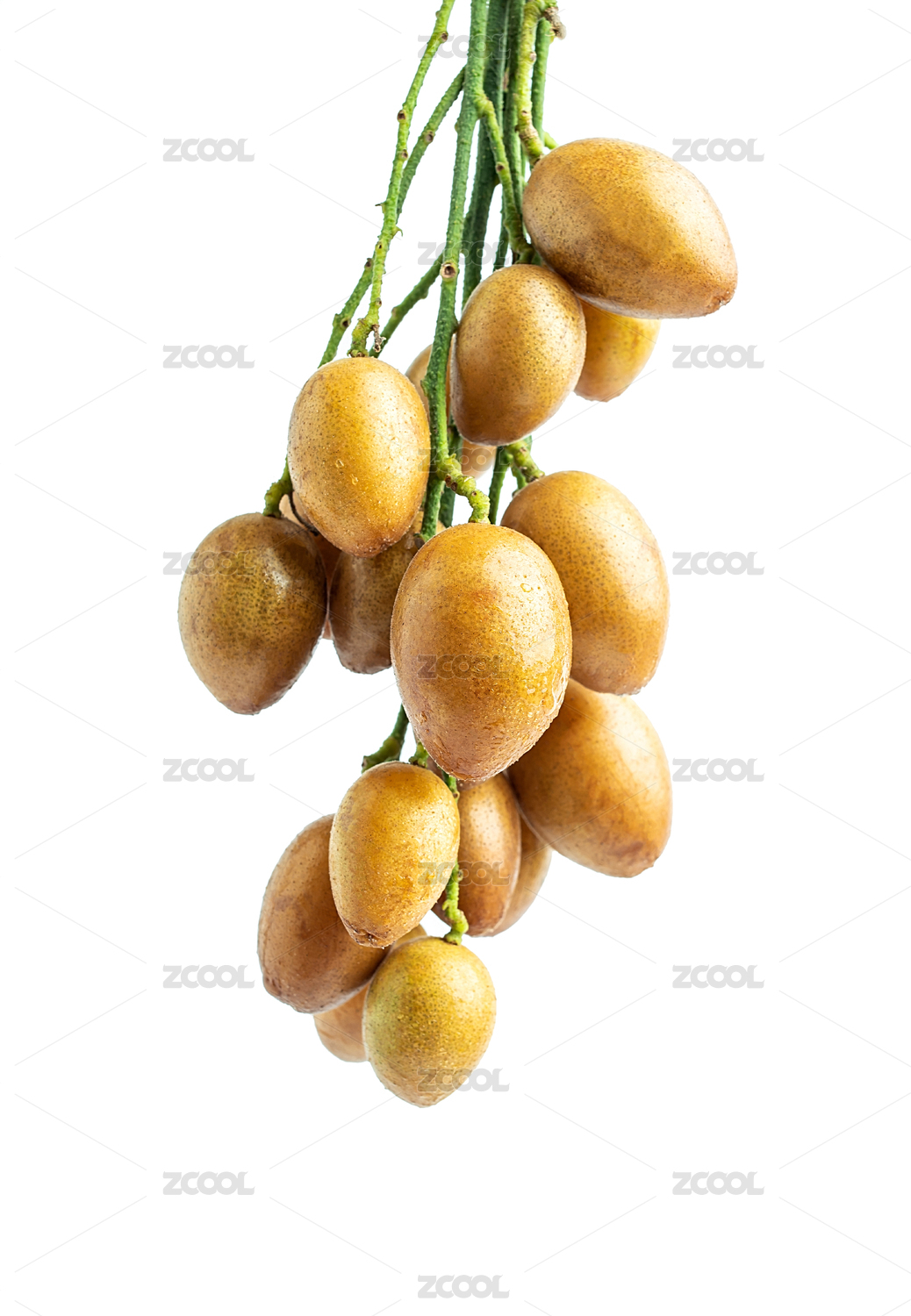 一串新鮮黃皮果在白背景上