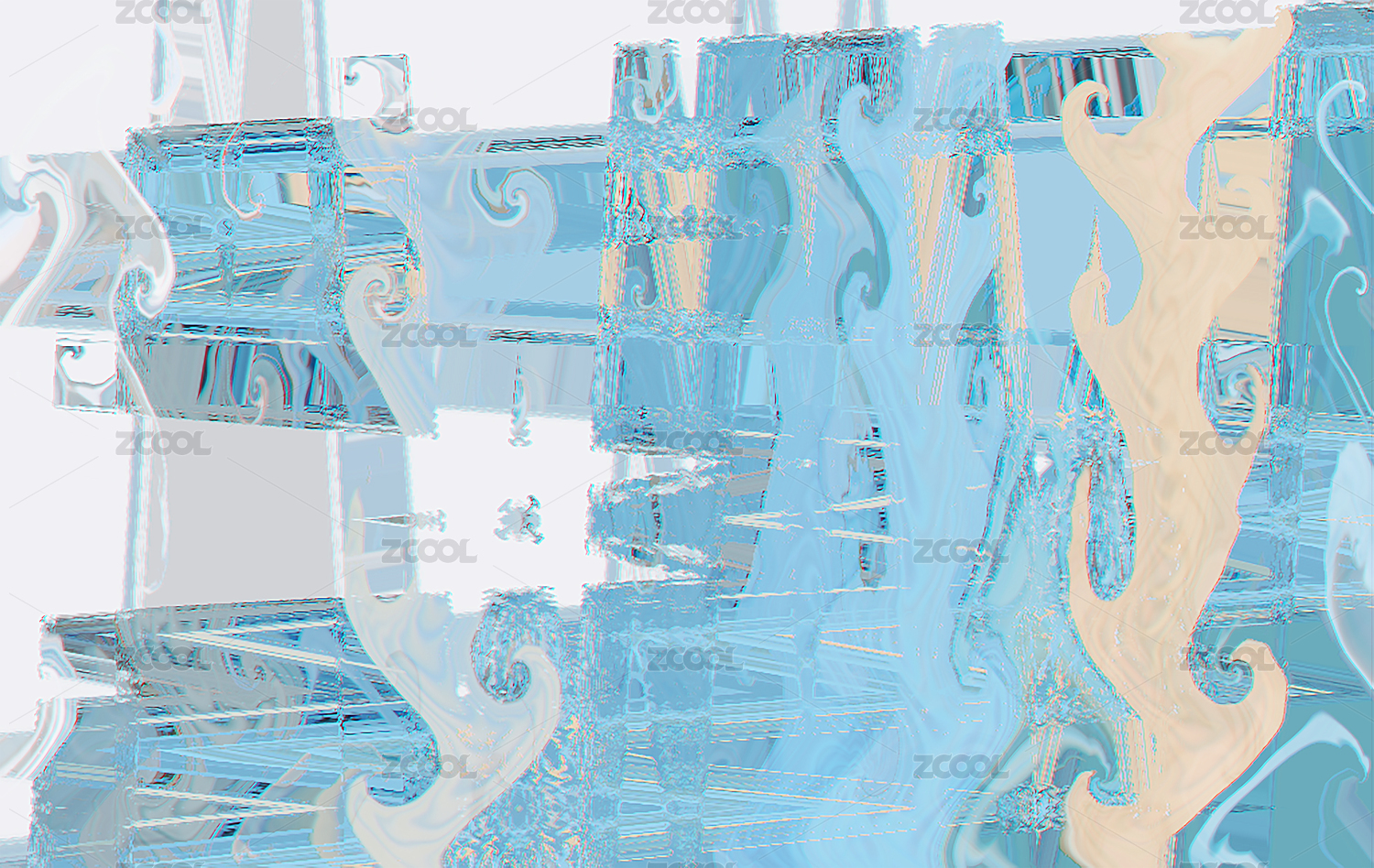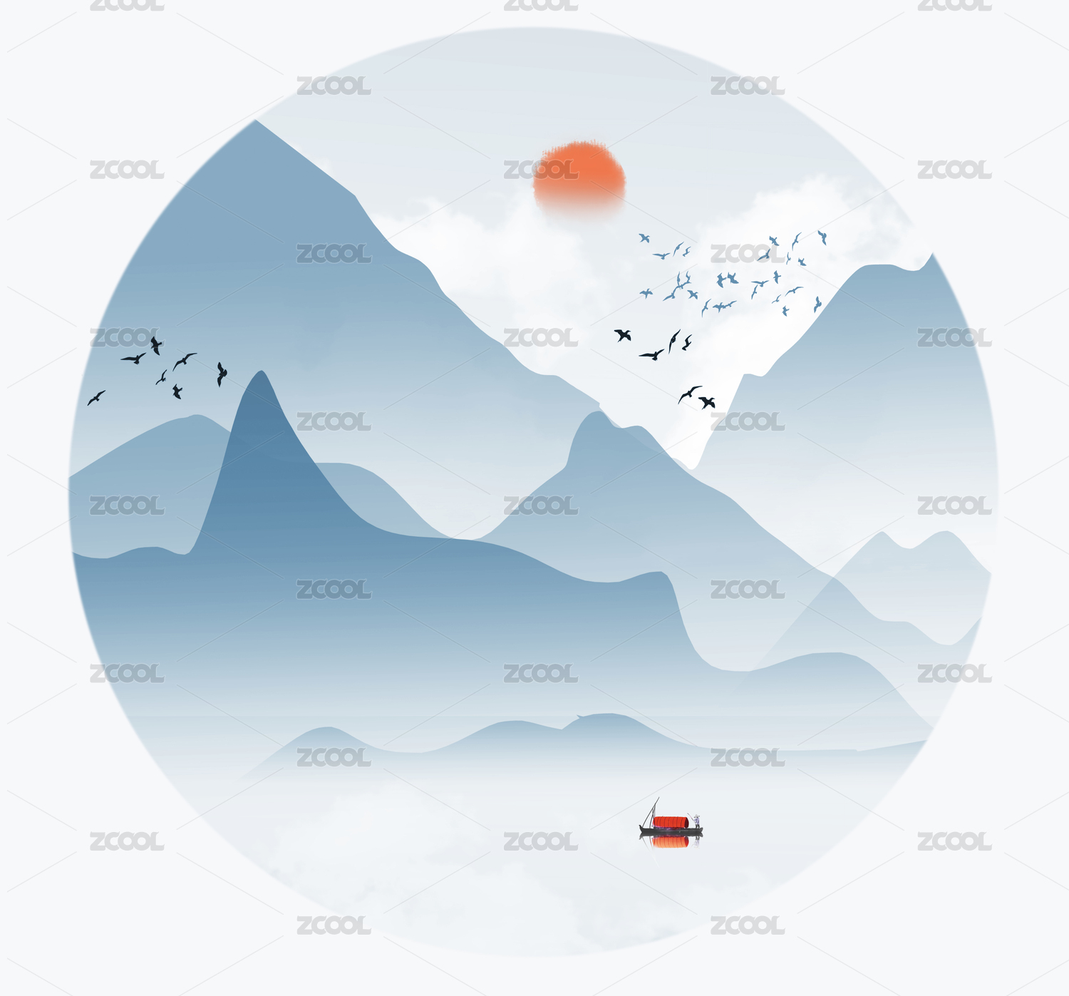 新中式山水藍色現(xiàn)代構成客廳玄關裝飾畫