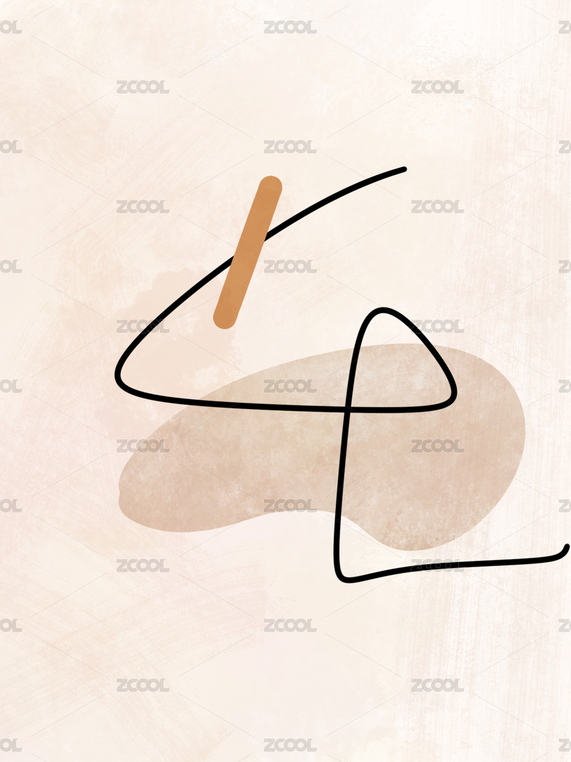 淺咖色塊和黑色線條交匯的簡約客廳裝飾畫