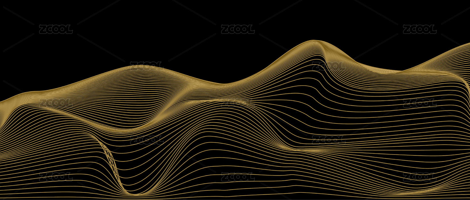 金色動感線條抽象山水意境玄關客廳裝飾畫