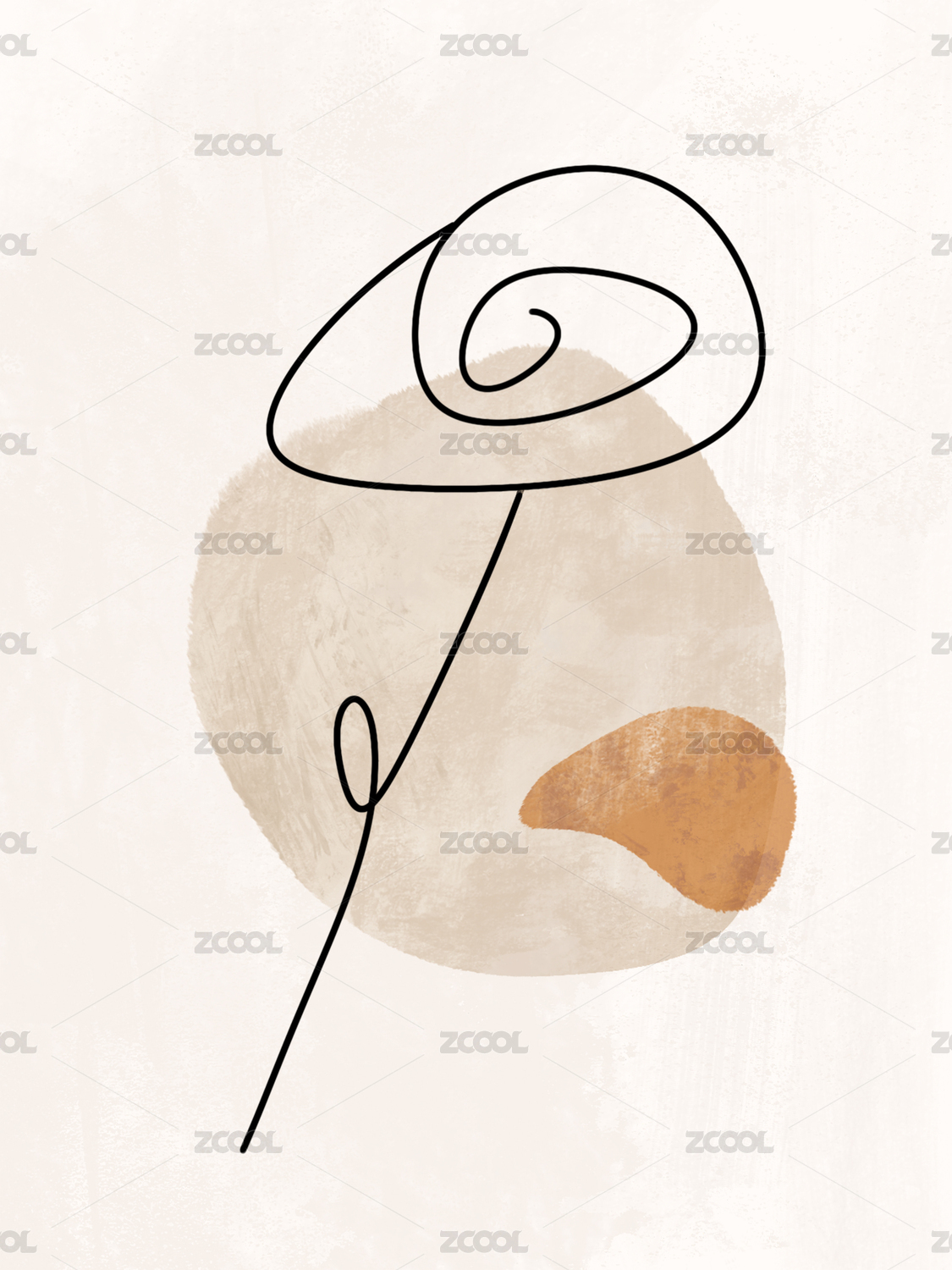 一枝線條玫瑰花在淺咖背景里花瓣是橙色塊