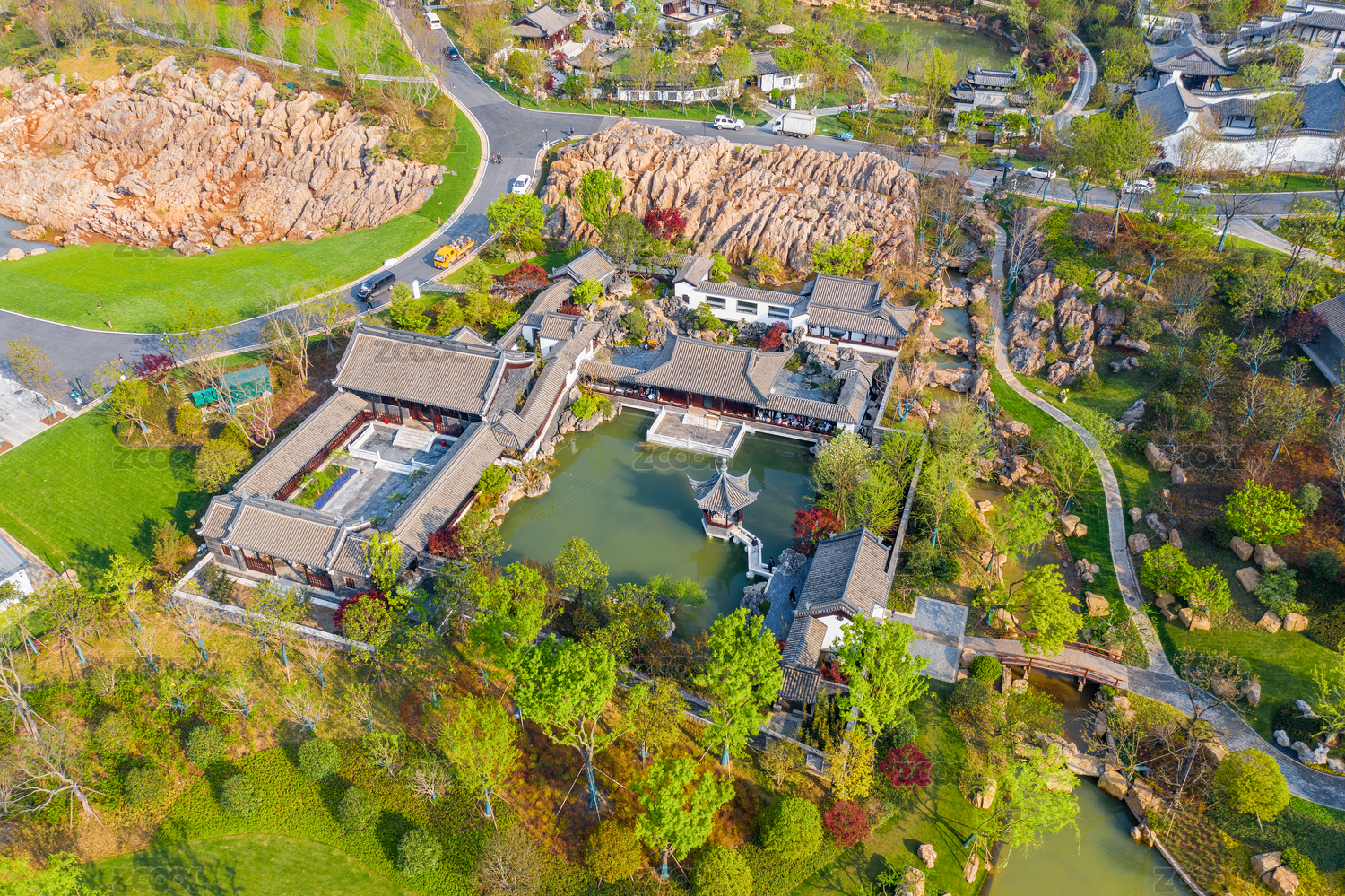 航拍江蘇省南京快開業(yè)的江蘇園博園