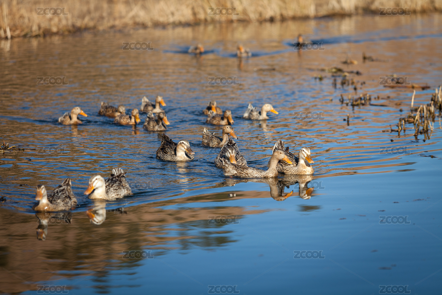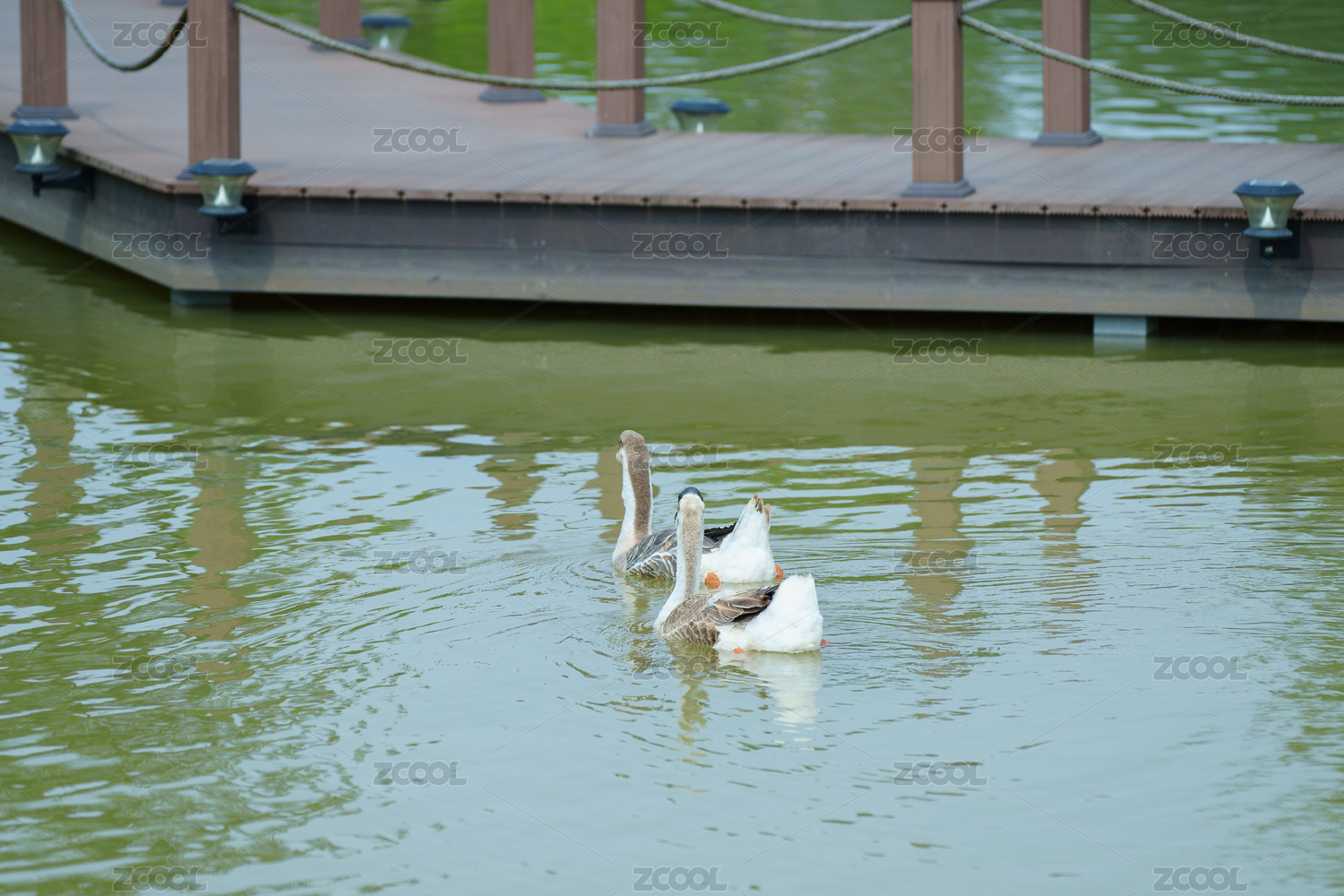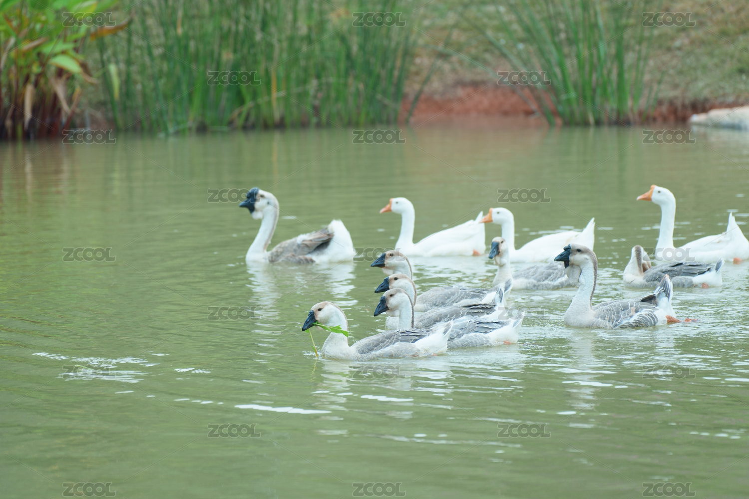 寧靜池塘的鵝群