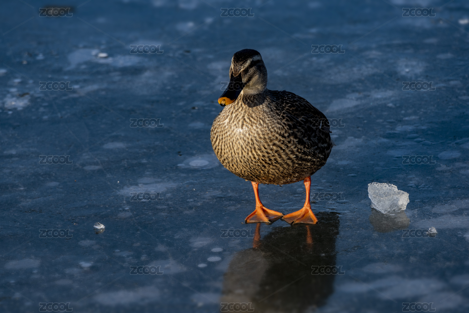 冰上站立的灰色野鴨