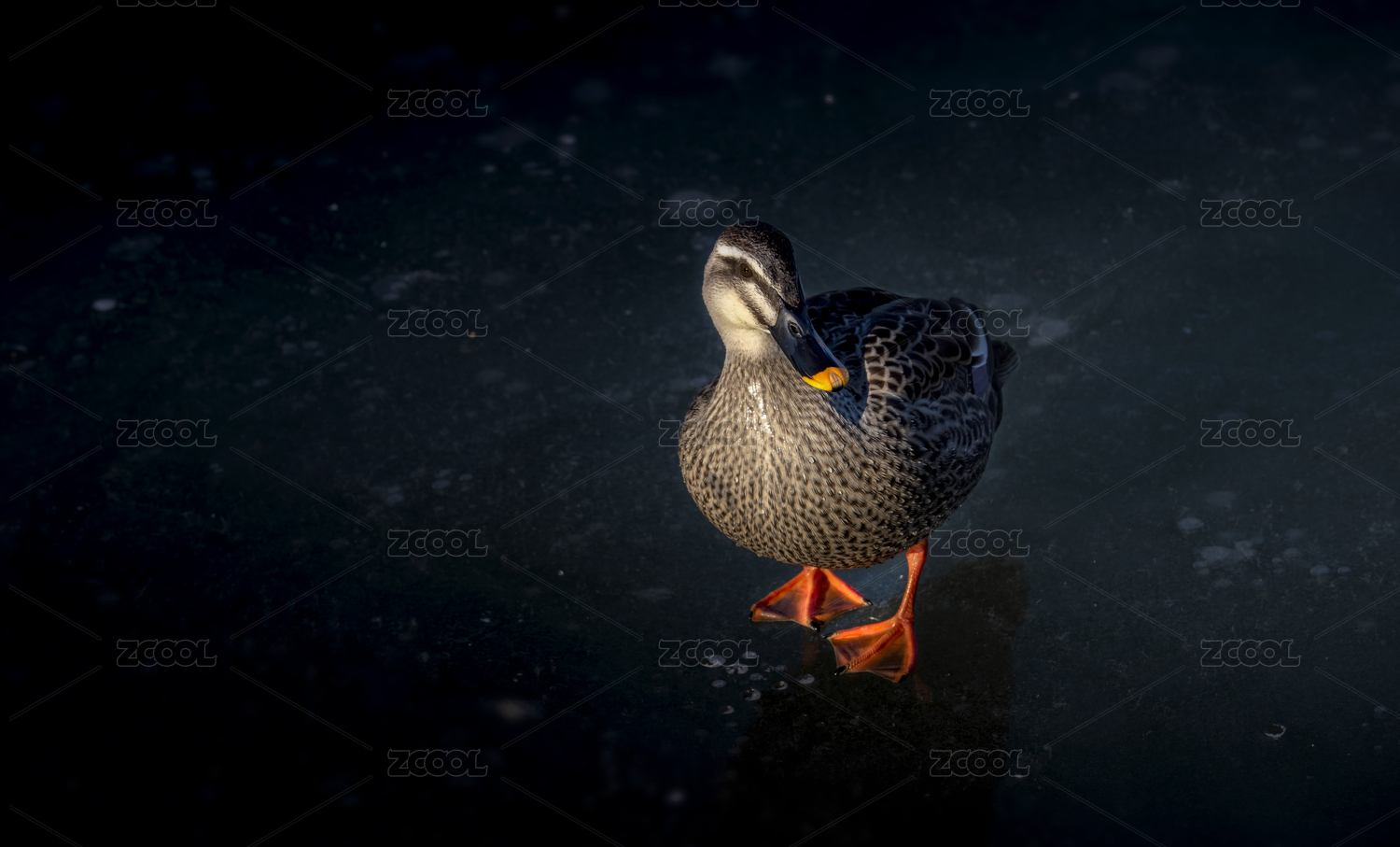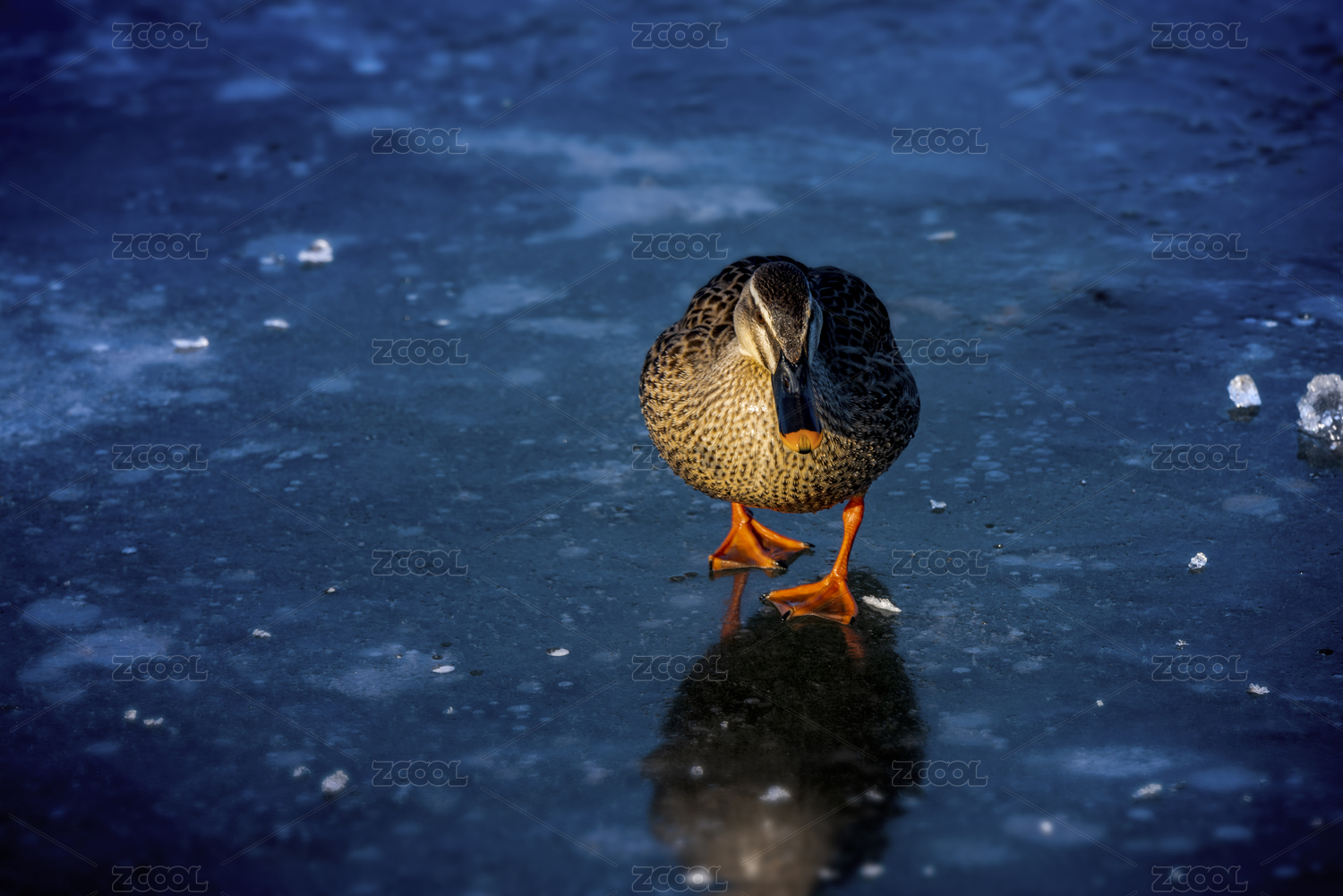 行走在冰面上的灰色野鴨