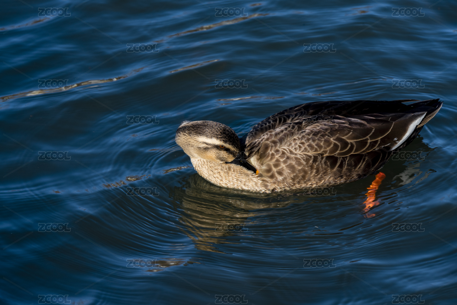 水里梳洗羽毛的灰色野鴨