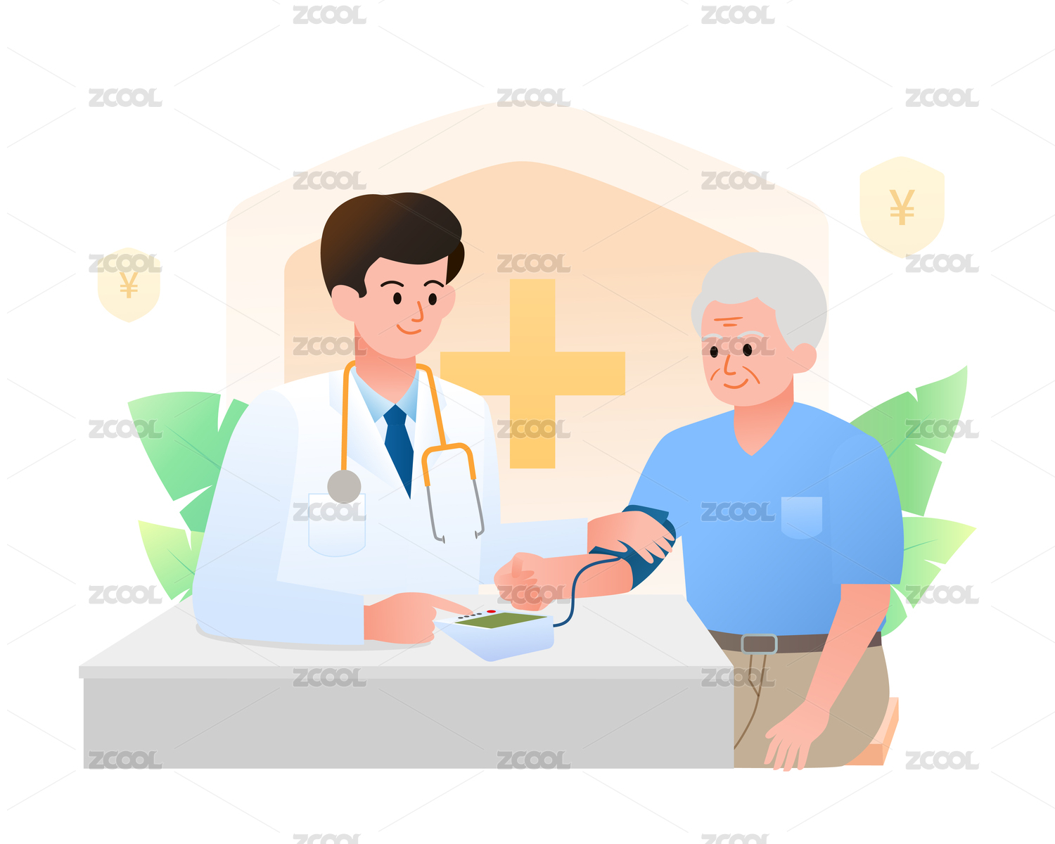 醫(yī)院醫(yī)生給老人聽診檢查身體 可愛風(fēng)格重陽節(jié)老年人醫(yī)療健康插畫