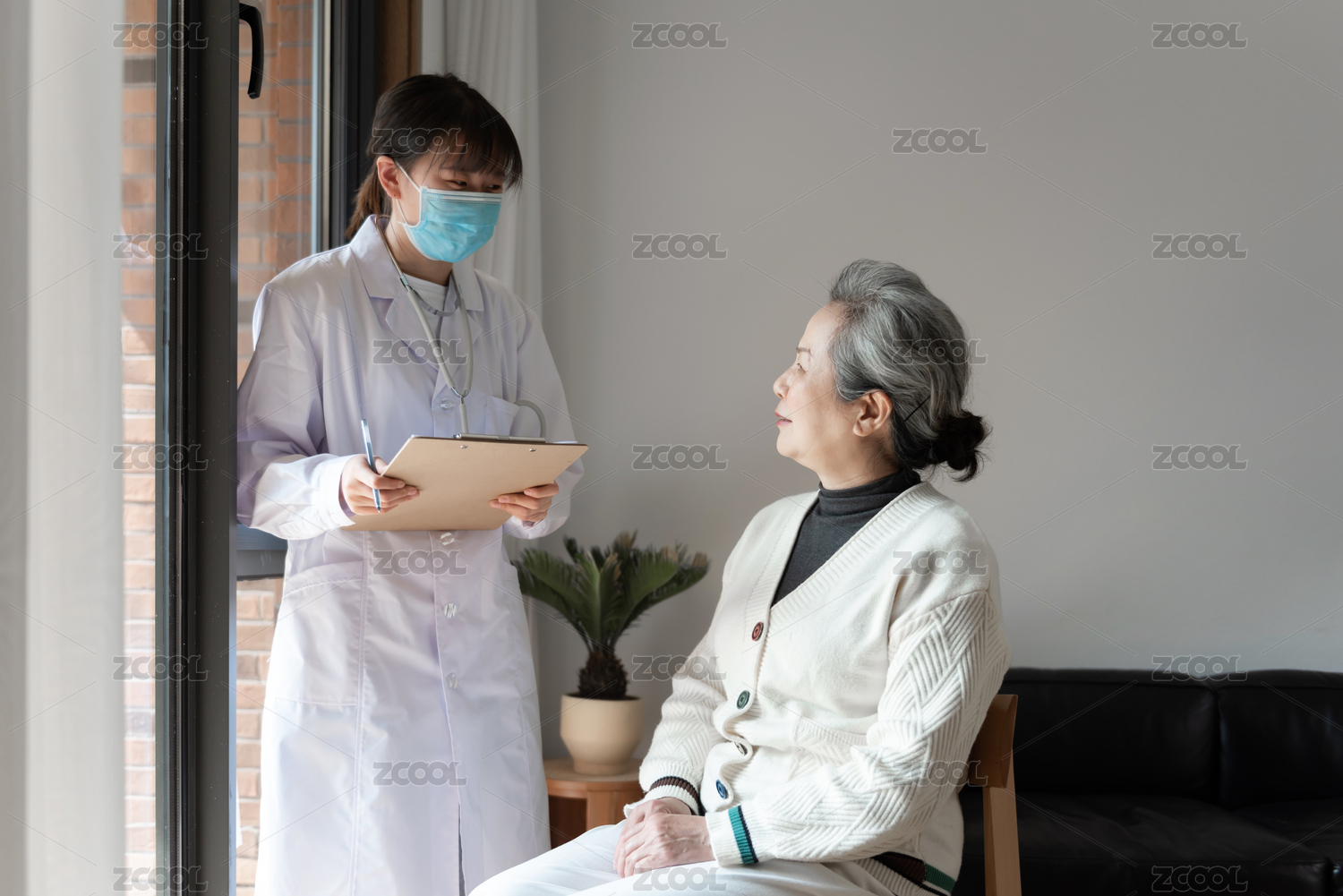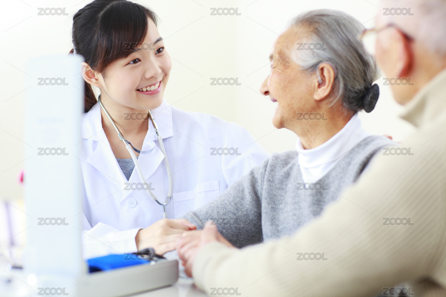 一個年輕的亞洲女醫(yī)生做健康檢查,以資深的中國女人,老年人保健