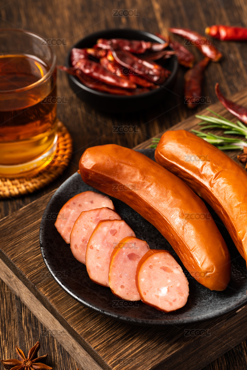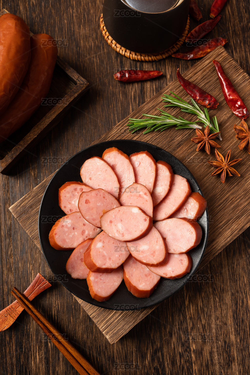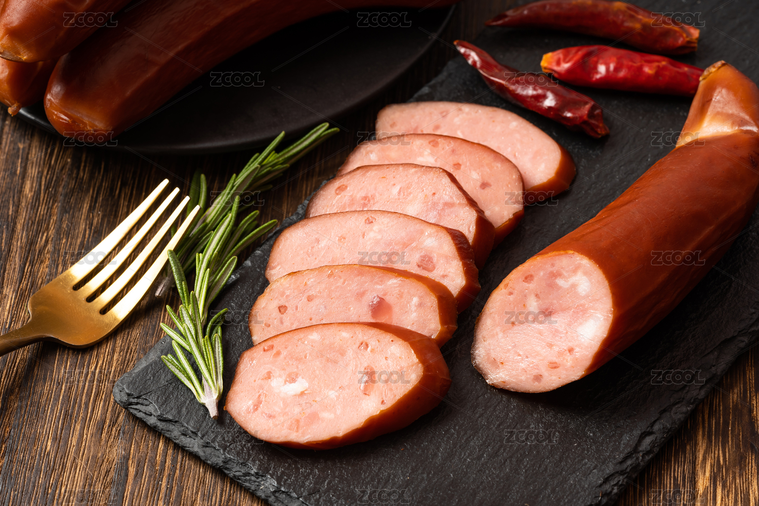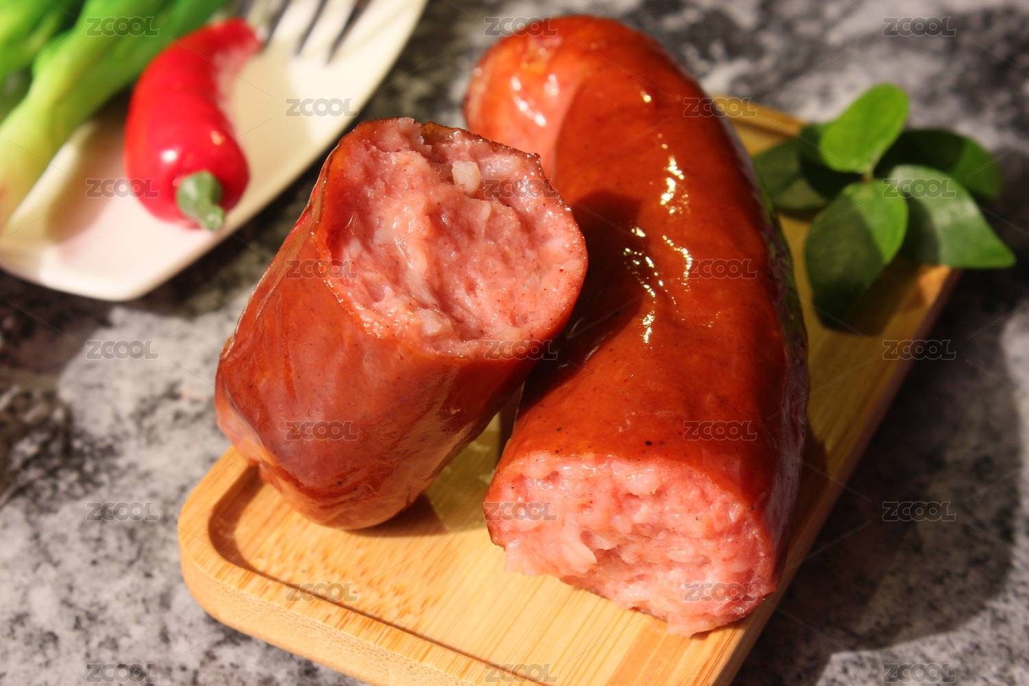 木紋桌上的紅腸