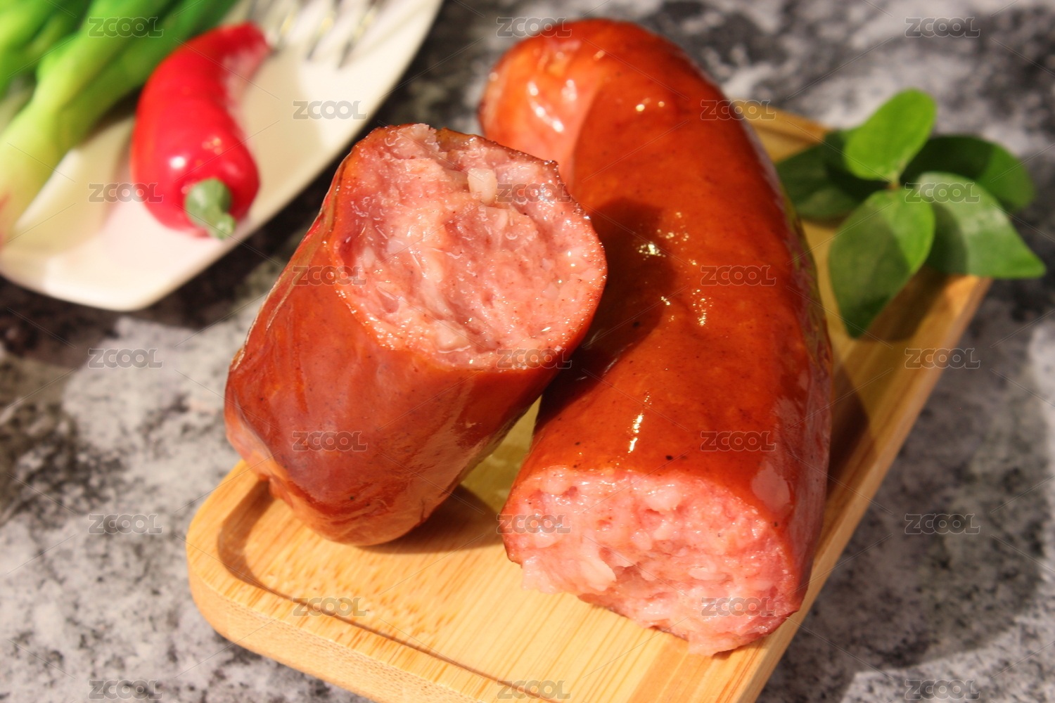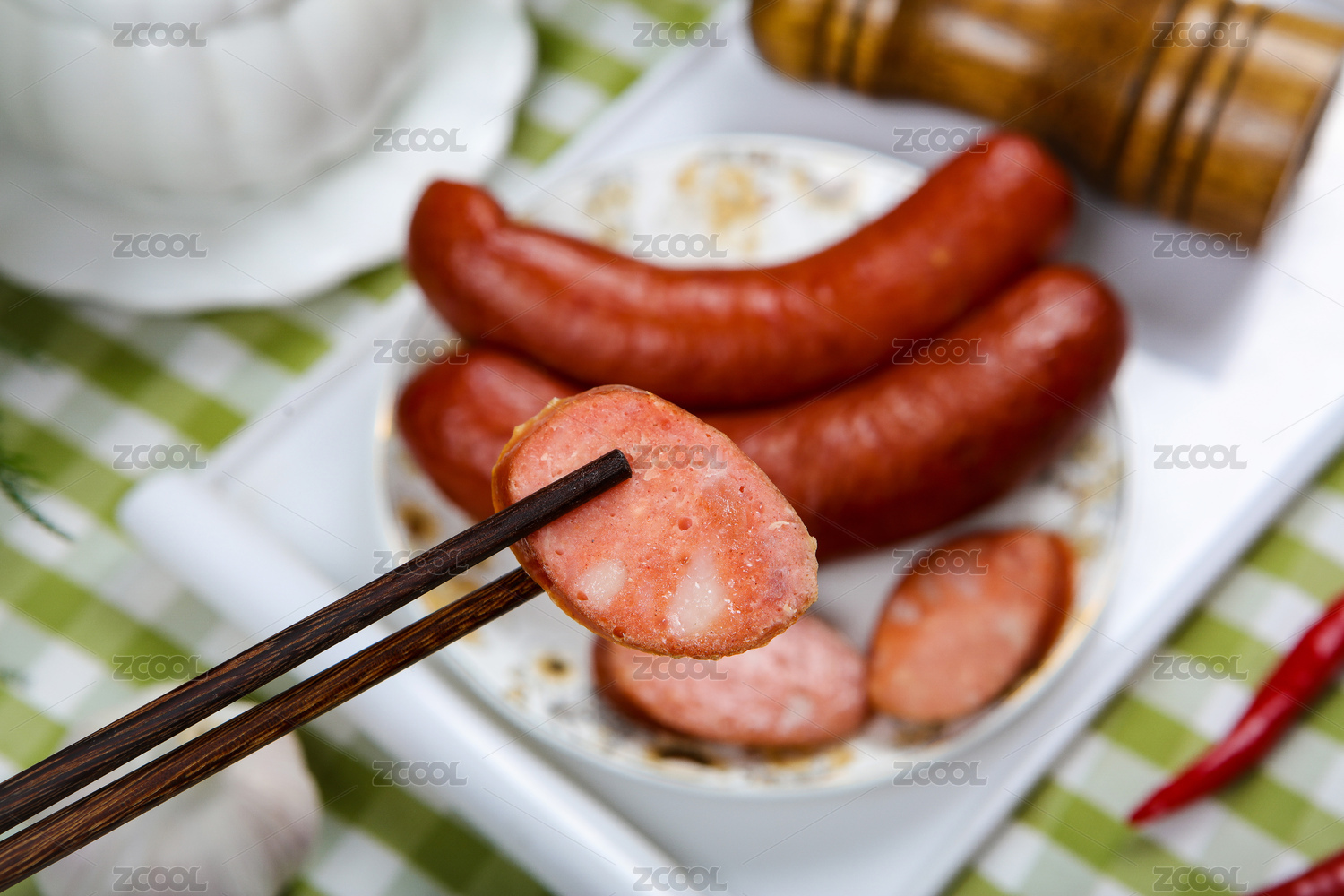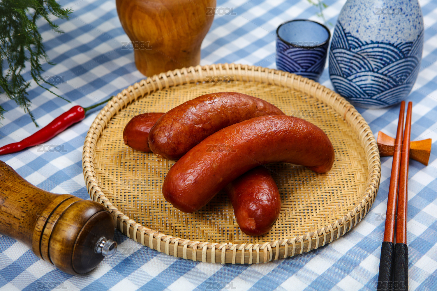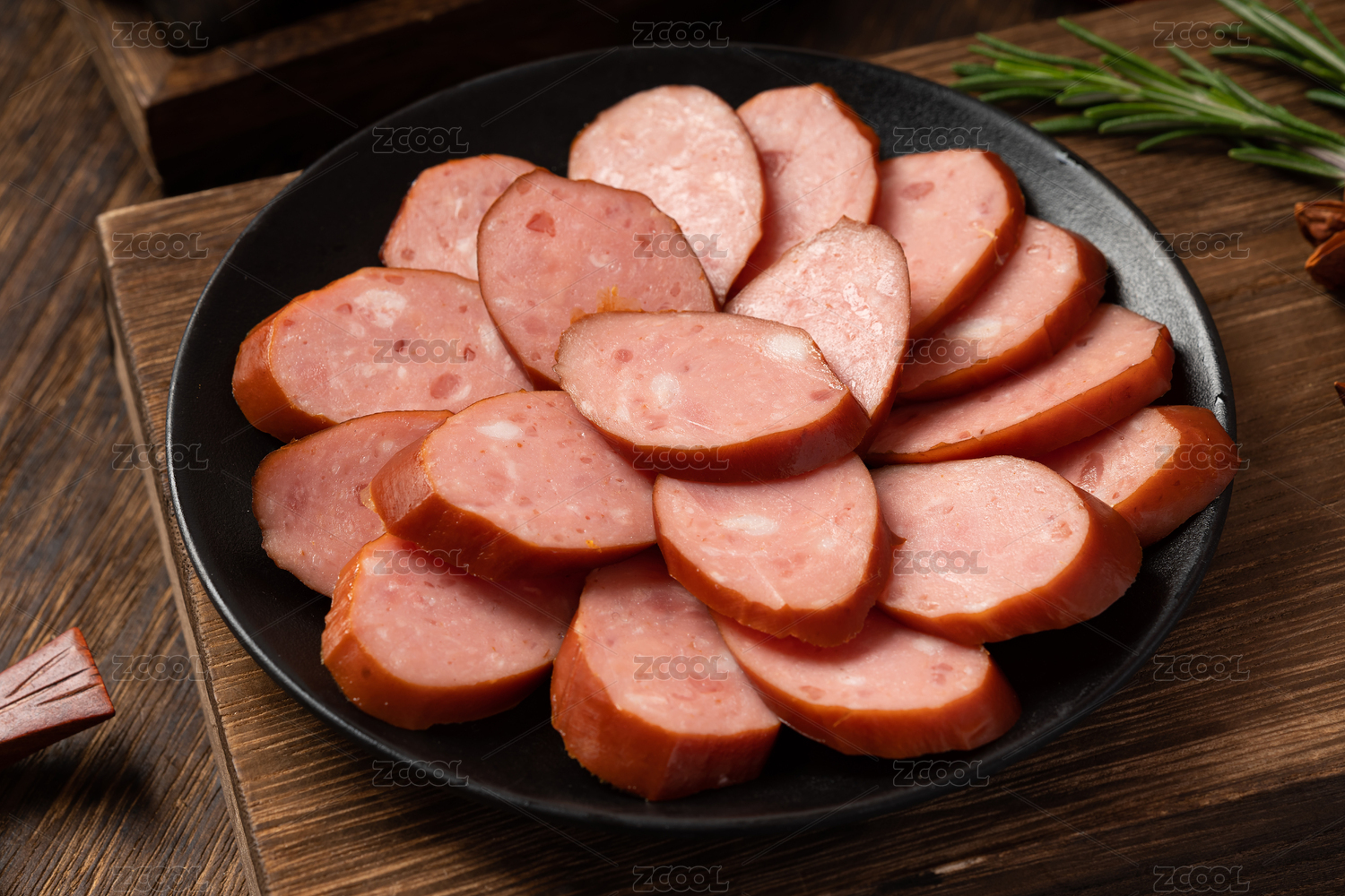 木紋桌上的紅腸