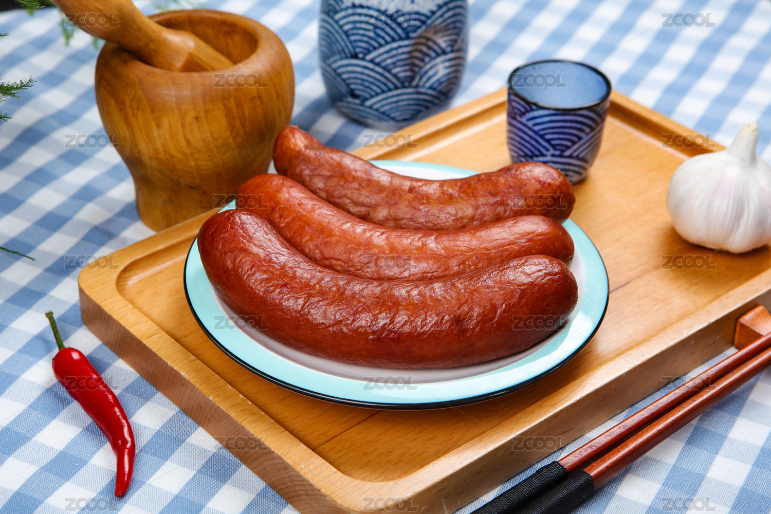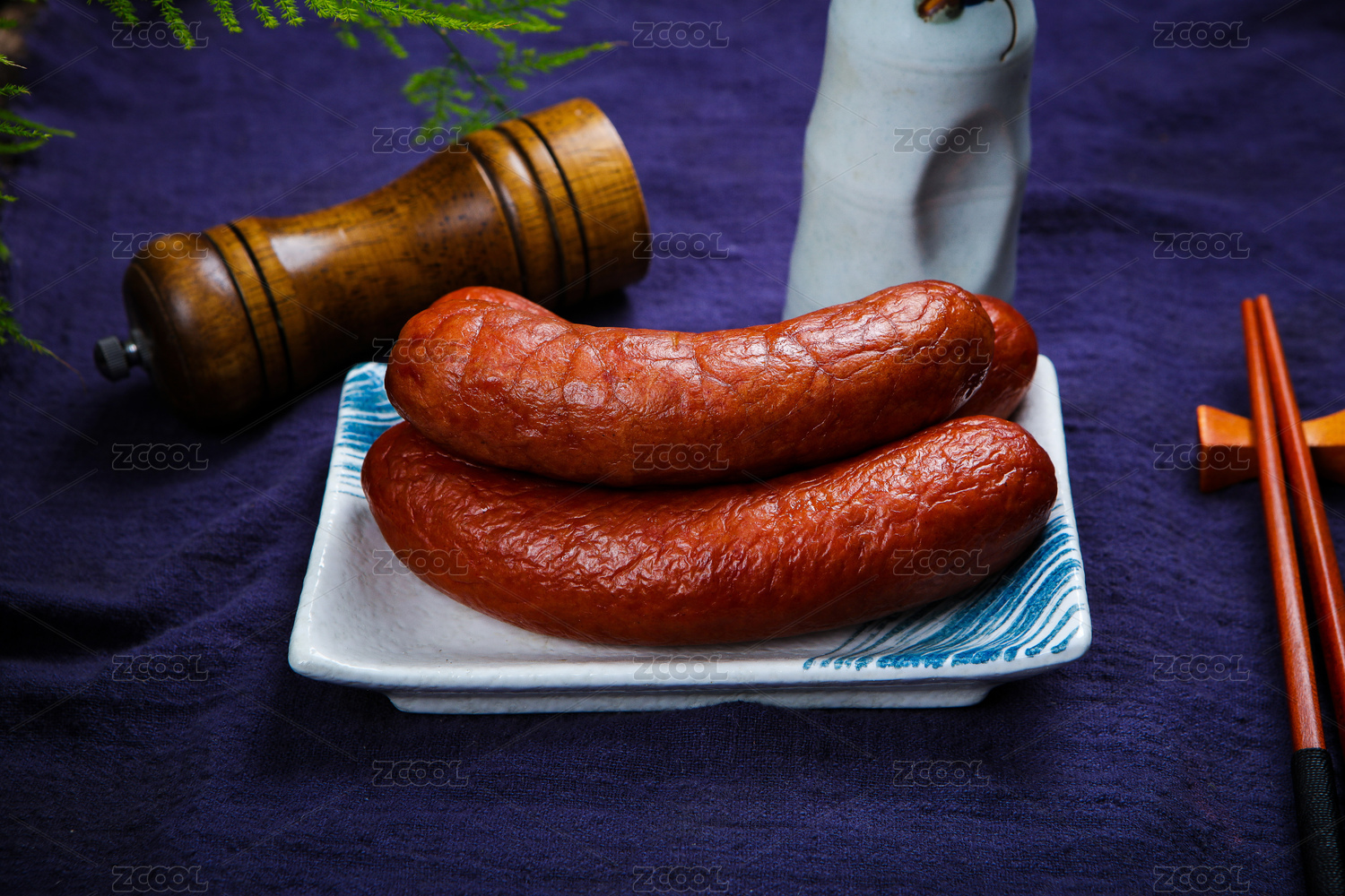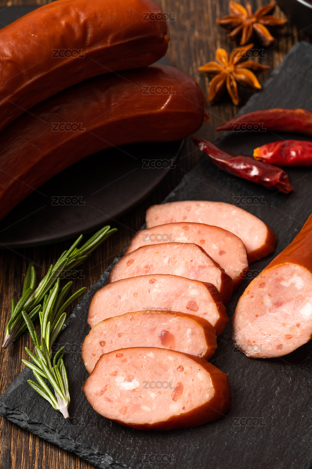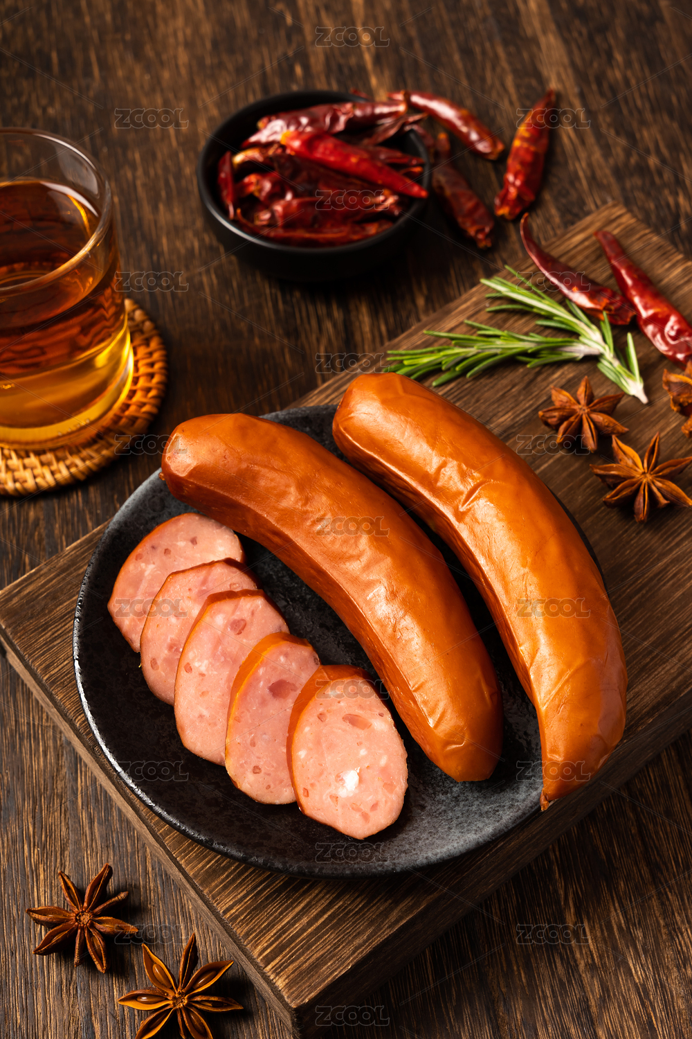 木紋桌上的紅腸
