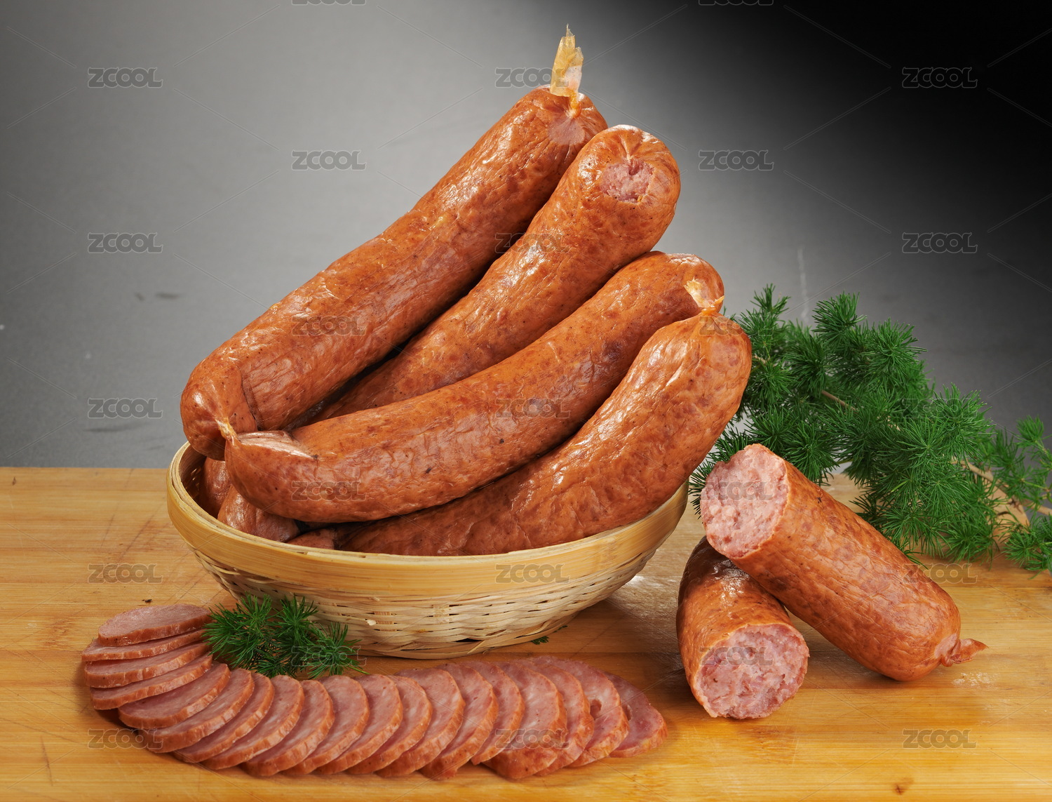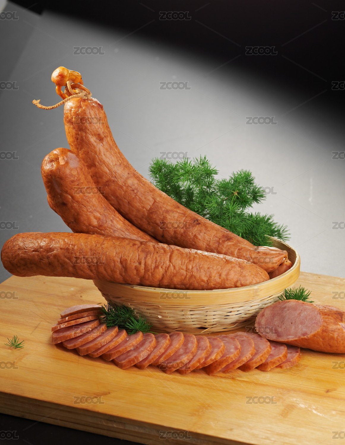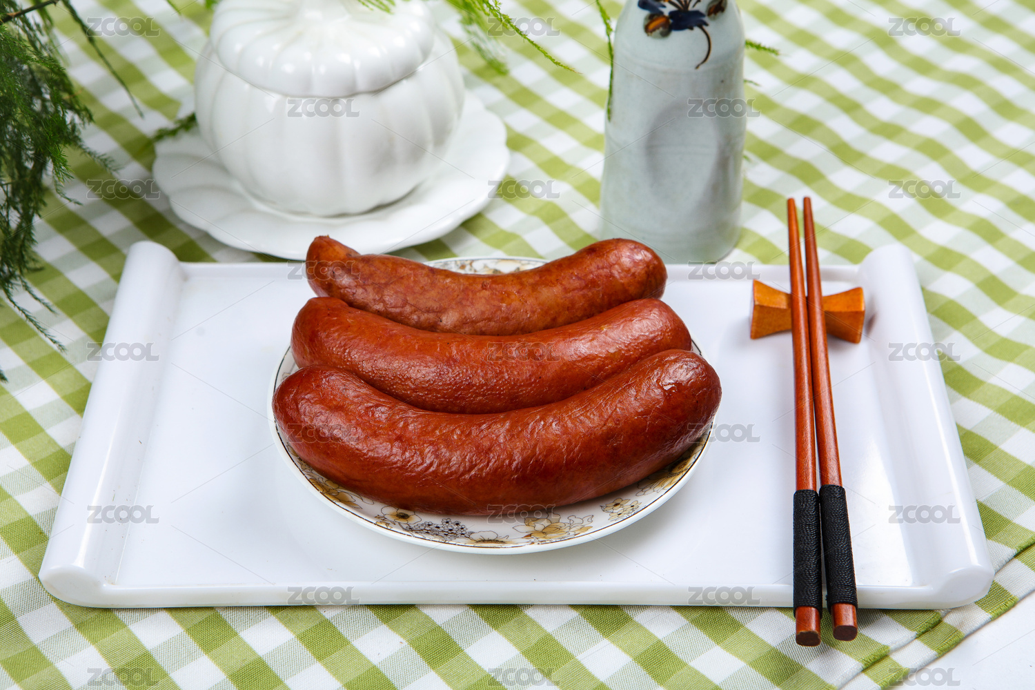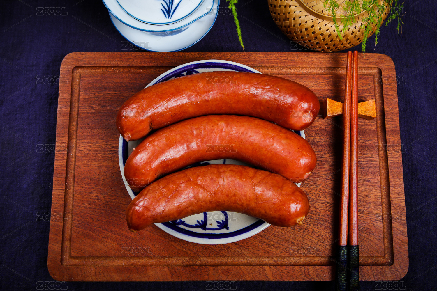 擺放在竹盤(pán)上的哈爾濱紅腸