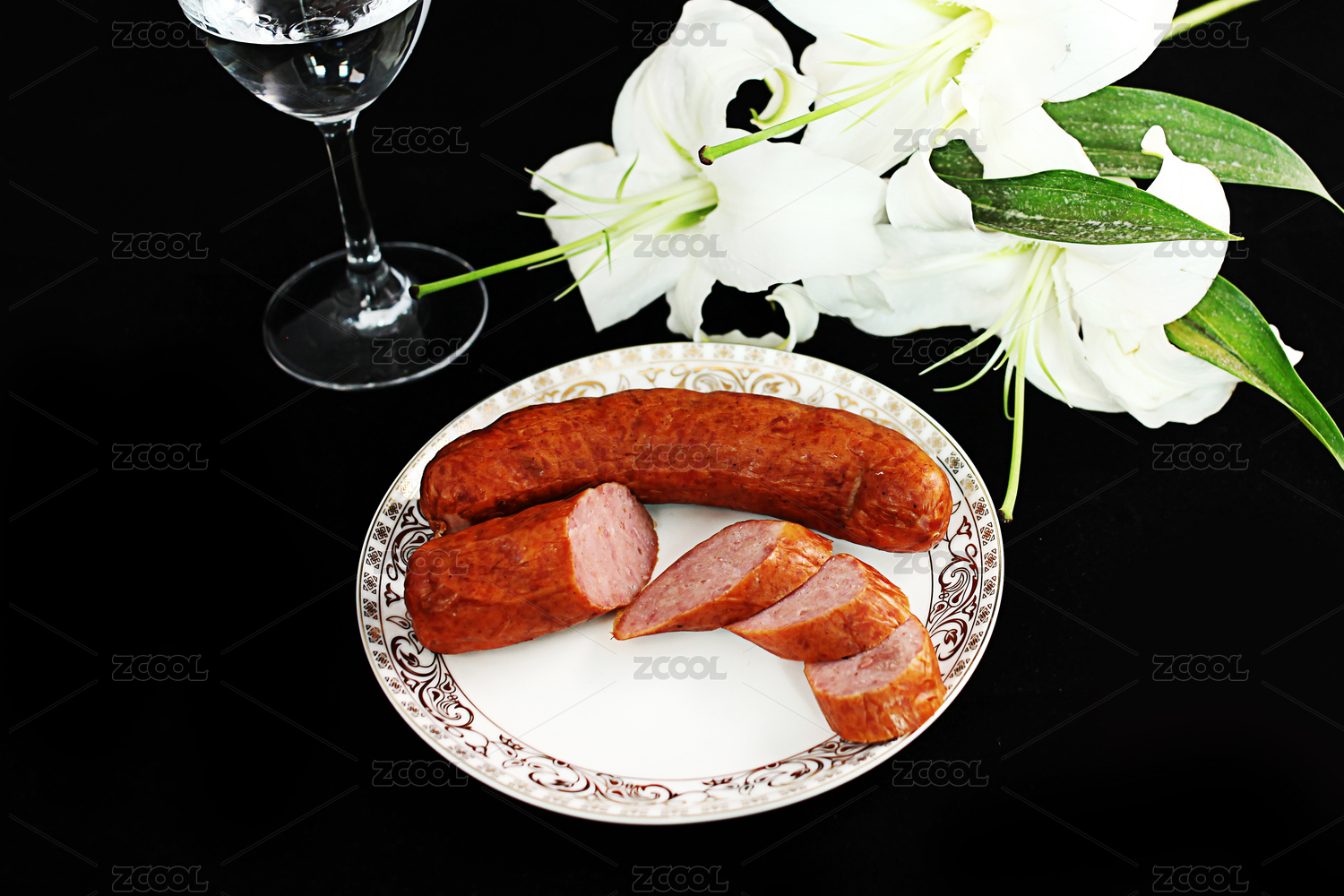 擺放在黑灰色底紋上的哈爾濱紅腸