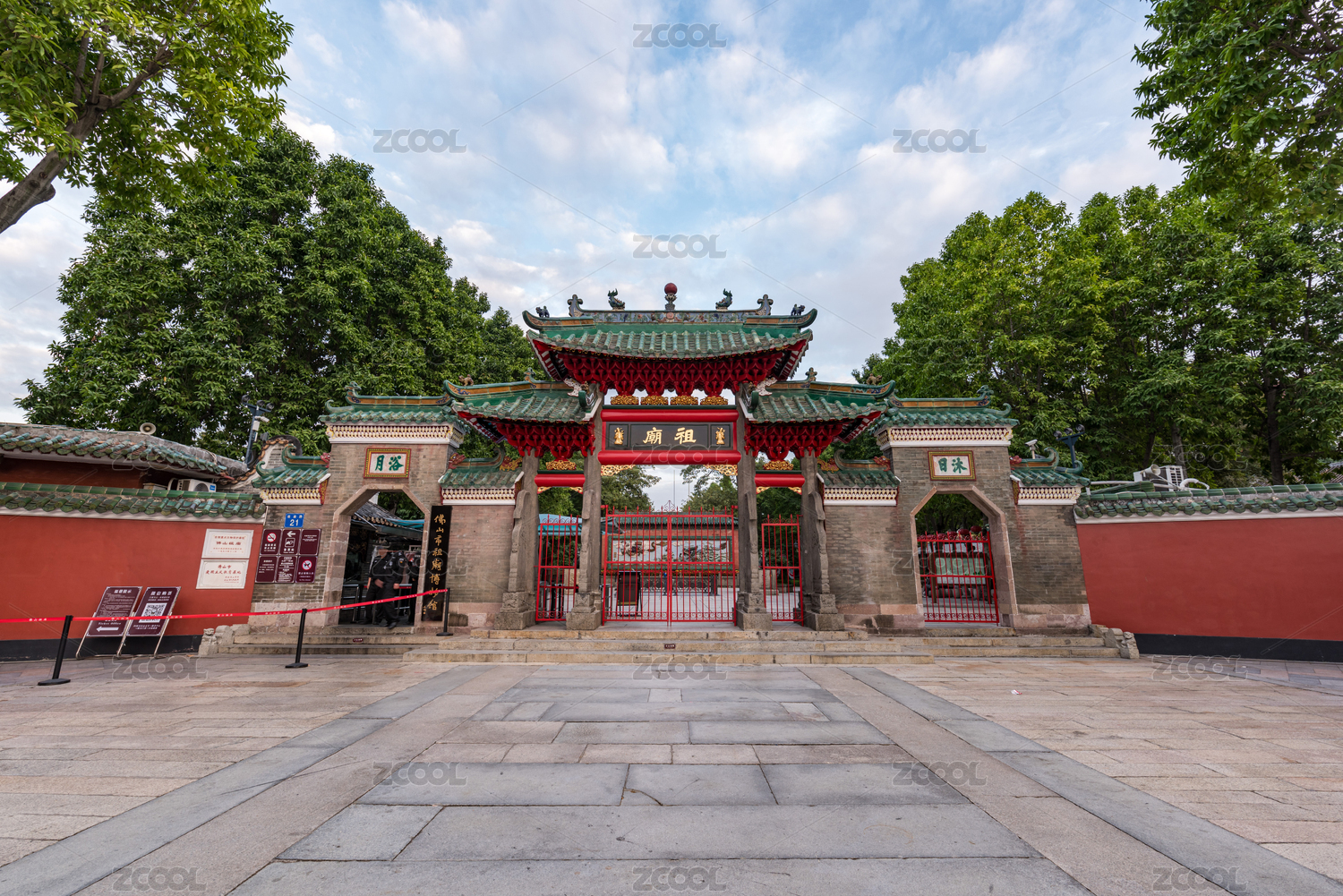 中國(guó)廣東省佛山祖廟博物館古建筑紅墻和街道風(fēng)光