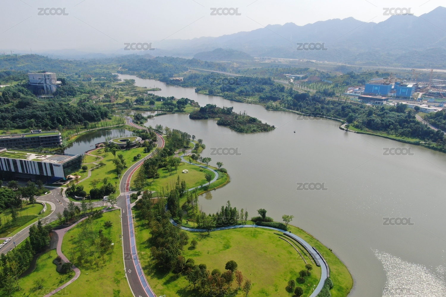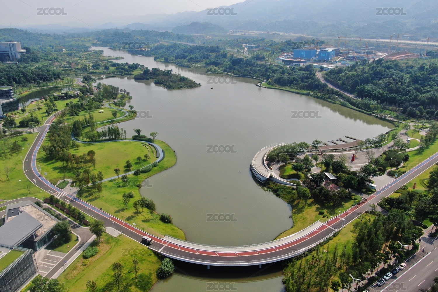 重慶兩江新區(qū)明月湖的山脈風光