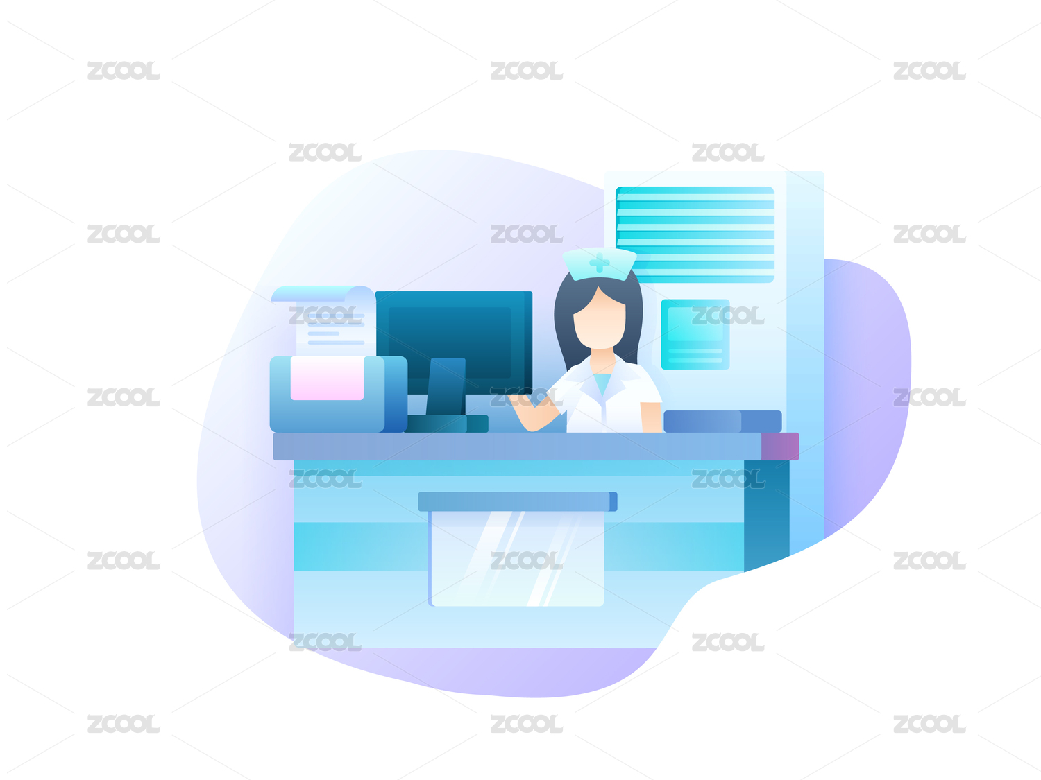藥店店員收銀柜臺醫(yī)療插畫設計