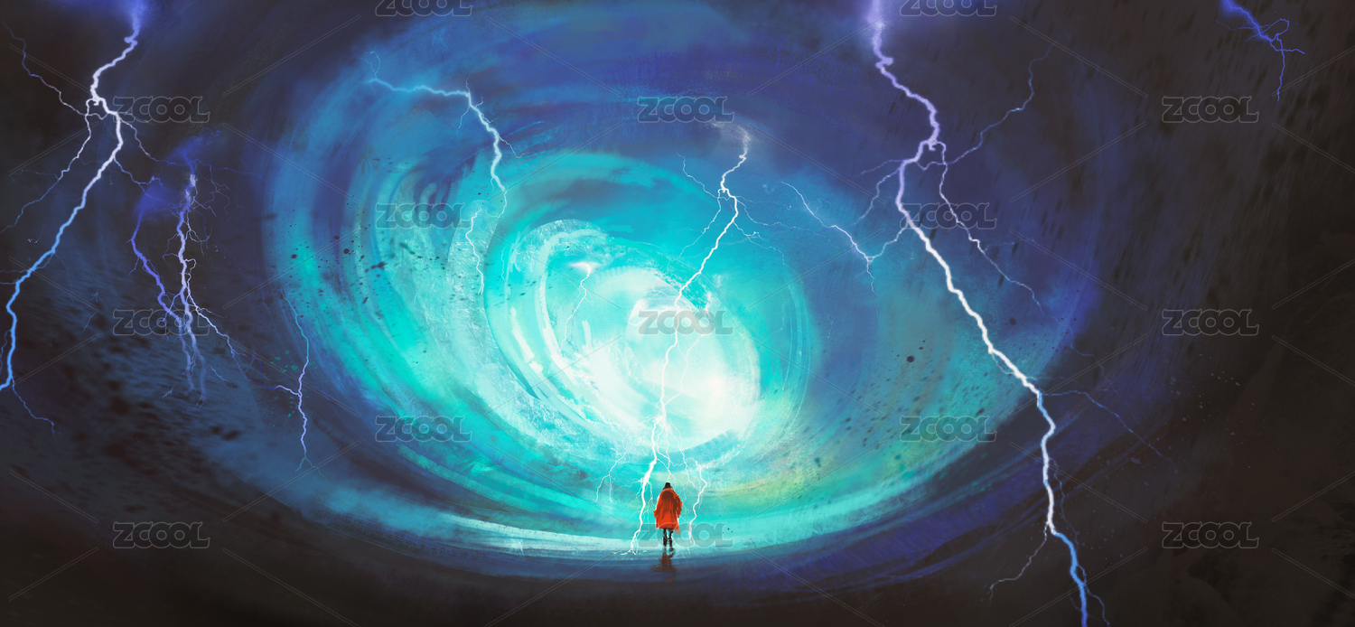 行走在漩渦里的人,數碼插圖。