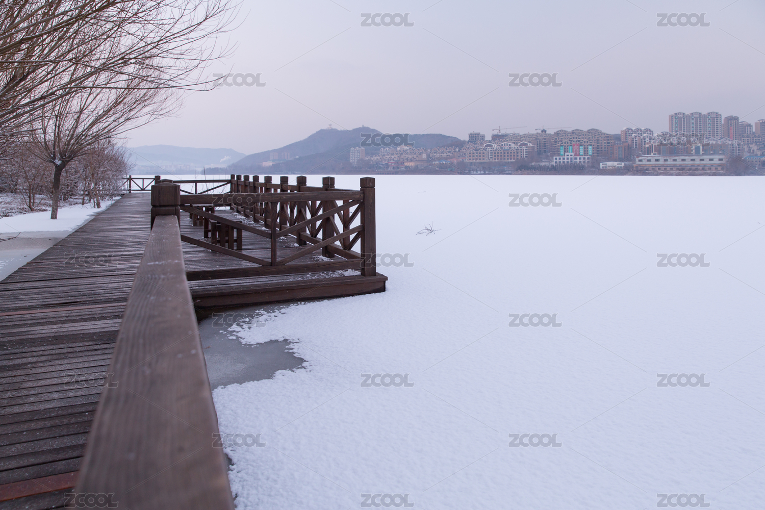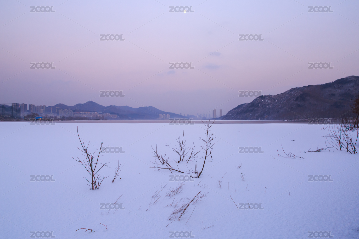 雪后結薄冰的大連大西山水庫