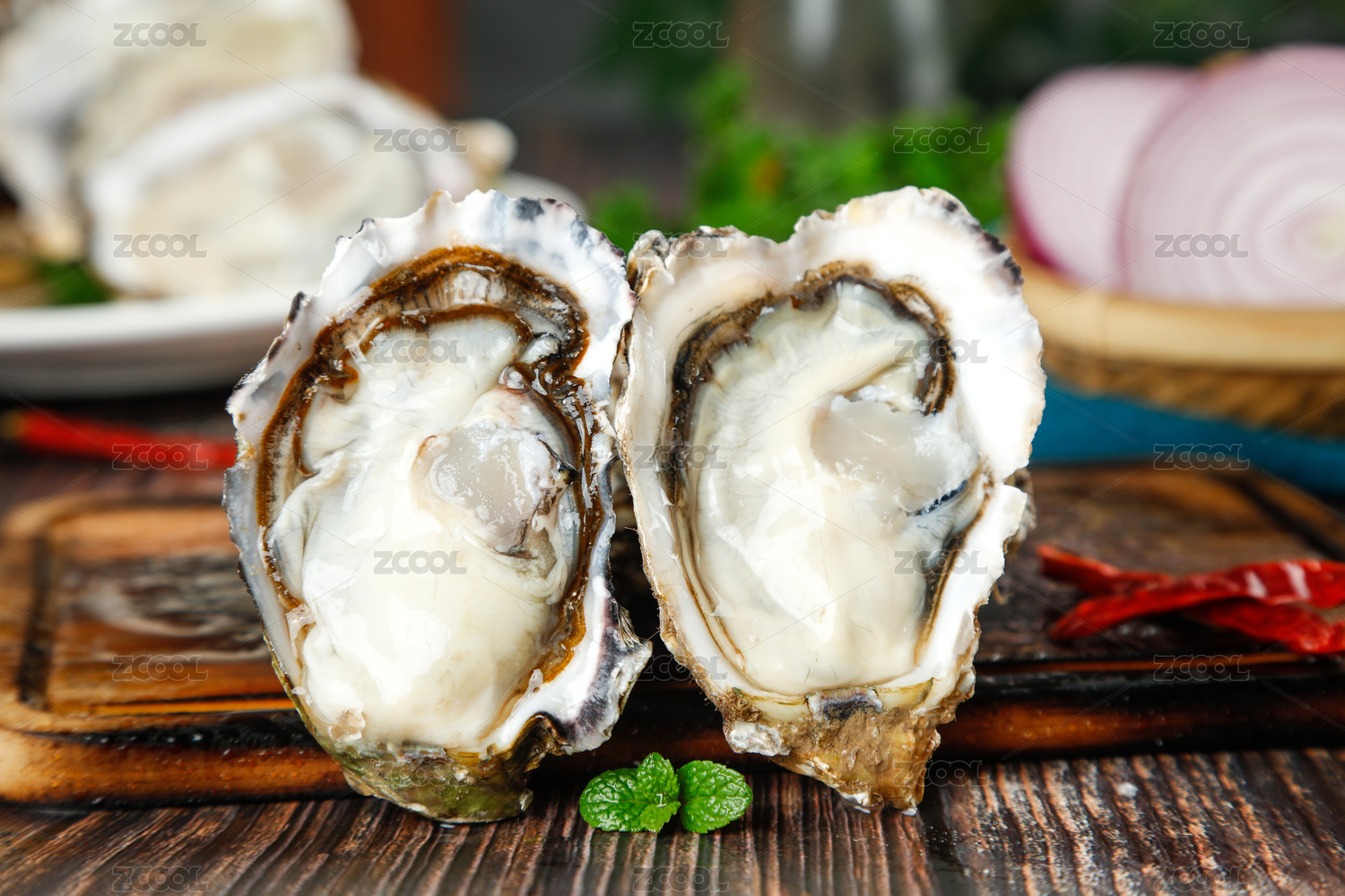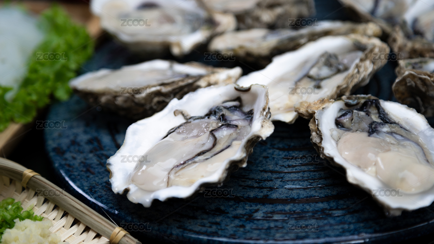 盤子上擺盤的新鮮生蠔海蠣子