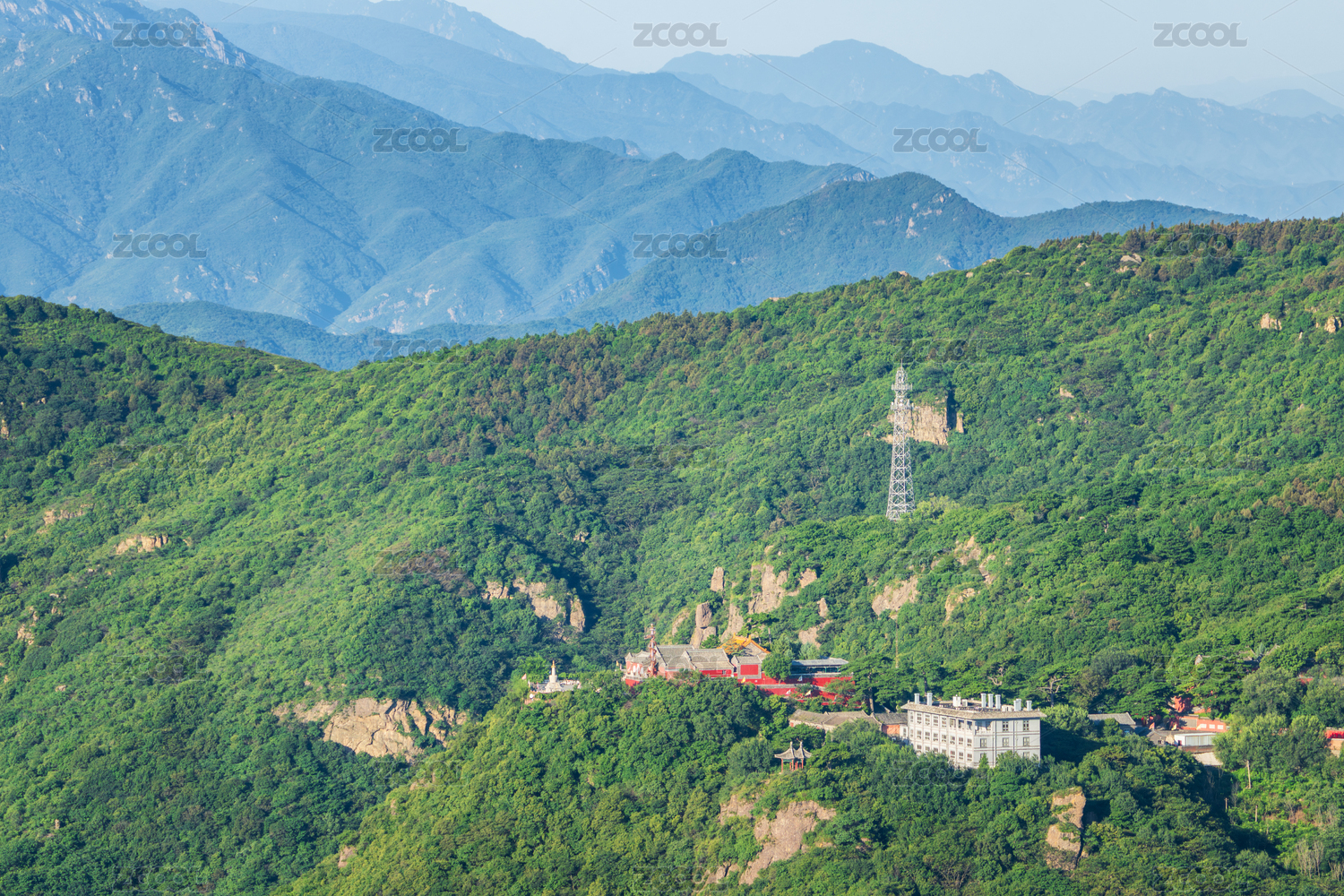夏天妙峰山航拍寺廟風(fēng)景