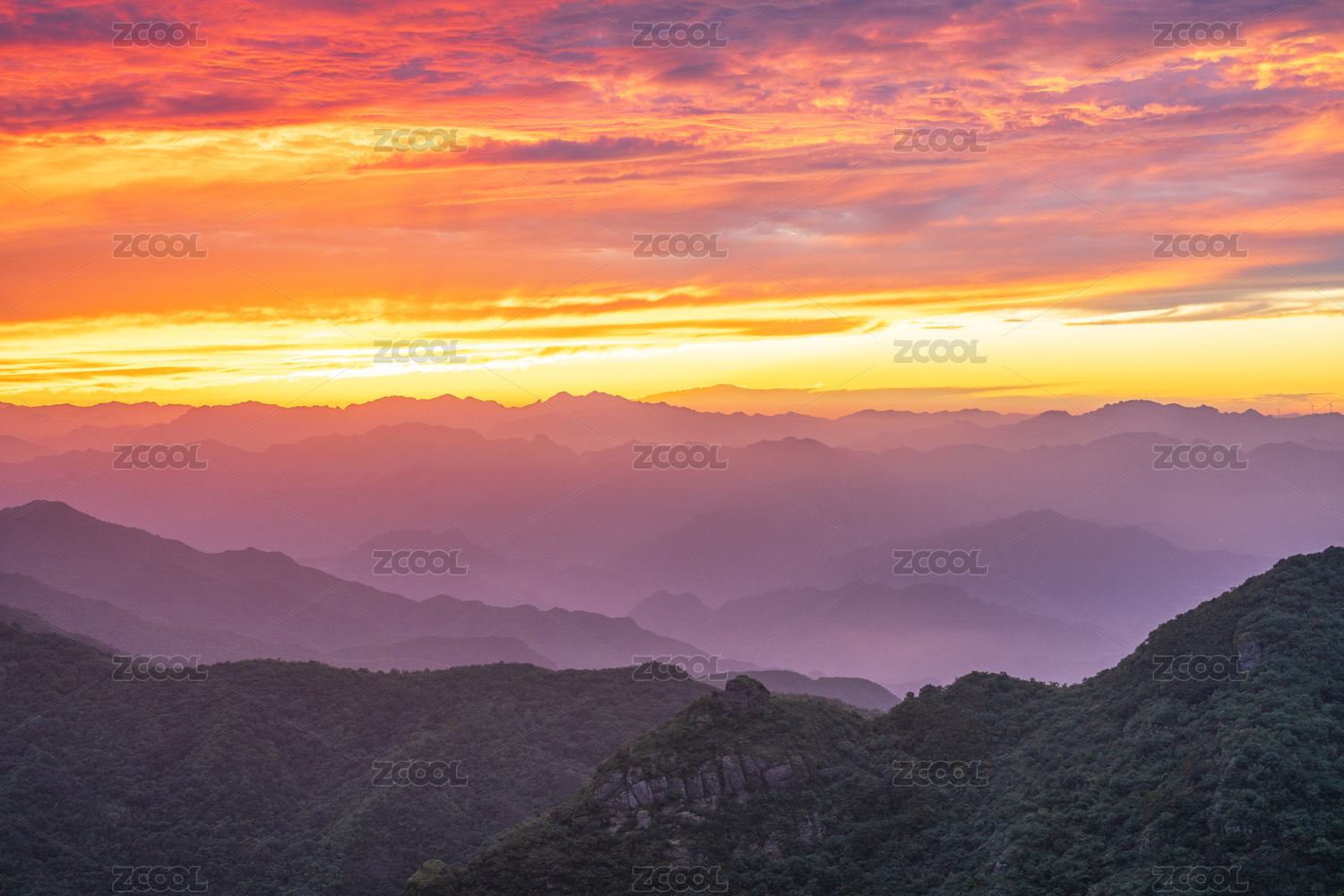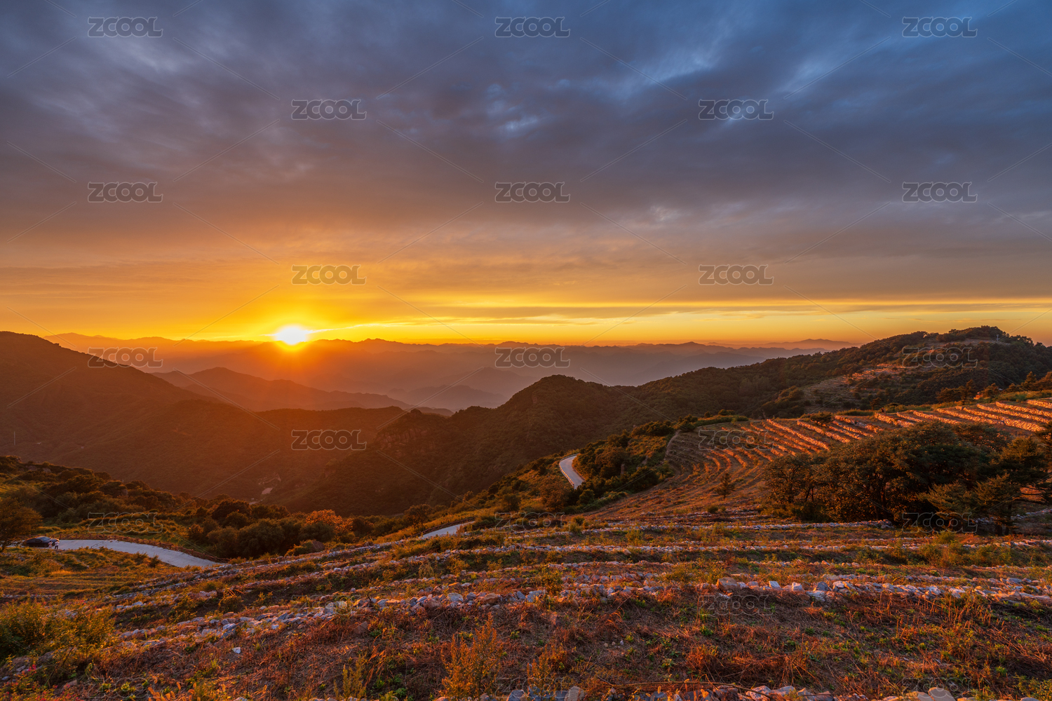 北京妙峰山日落晚霞美景