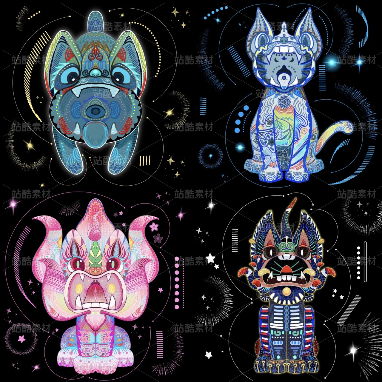 賽博圖騰動(dòng)物插畫(huà) 霓虹色彩未來(lái)感裝飾畫(huà)素材