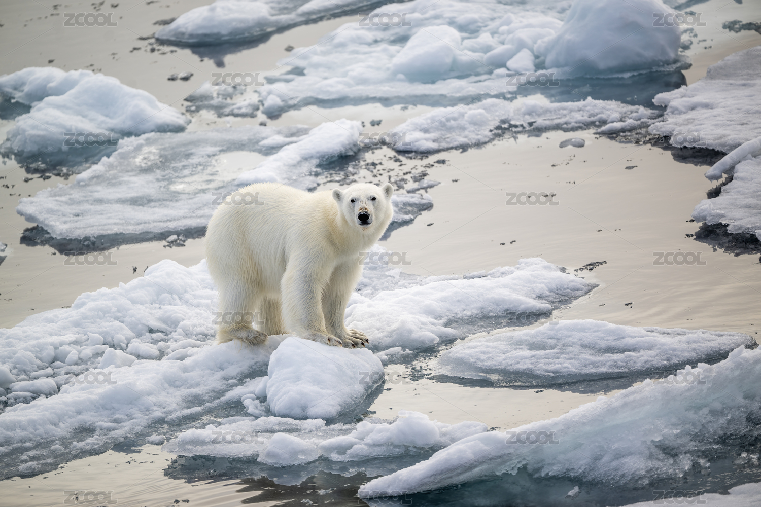 可愛白色北極熊站在冰塊上