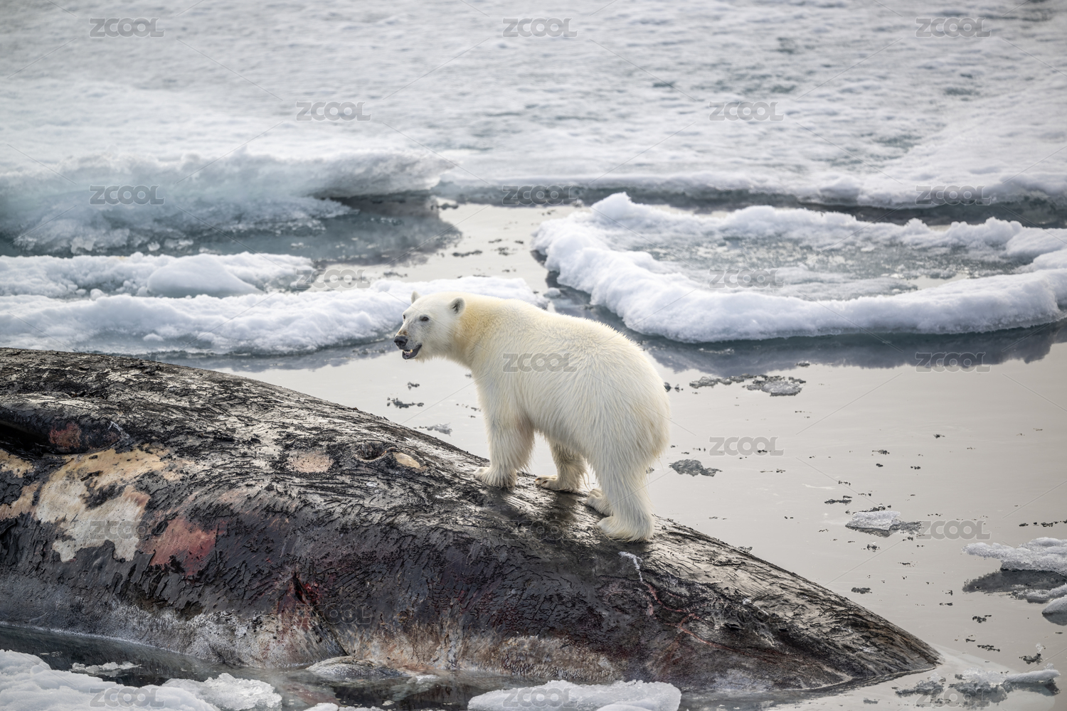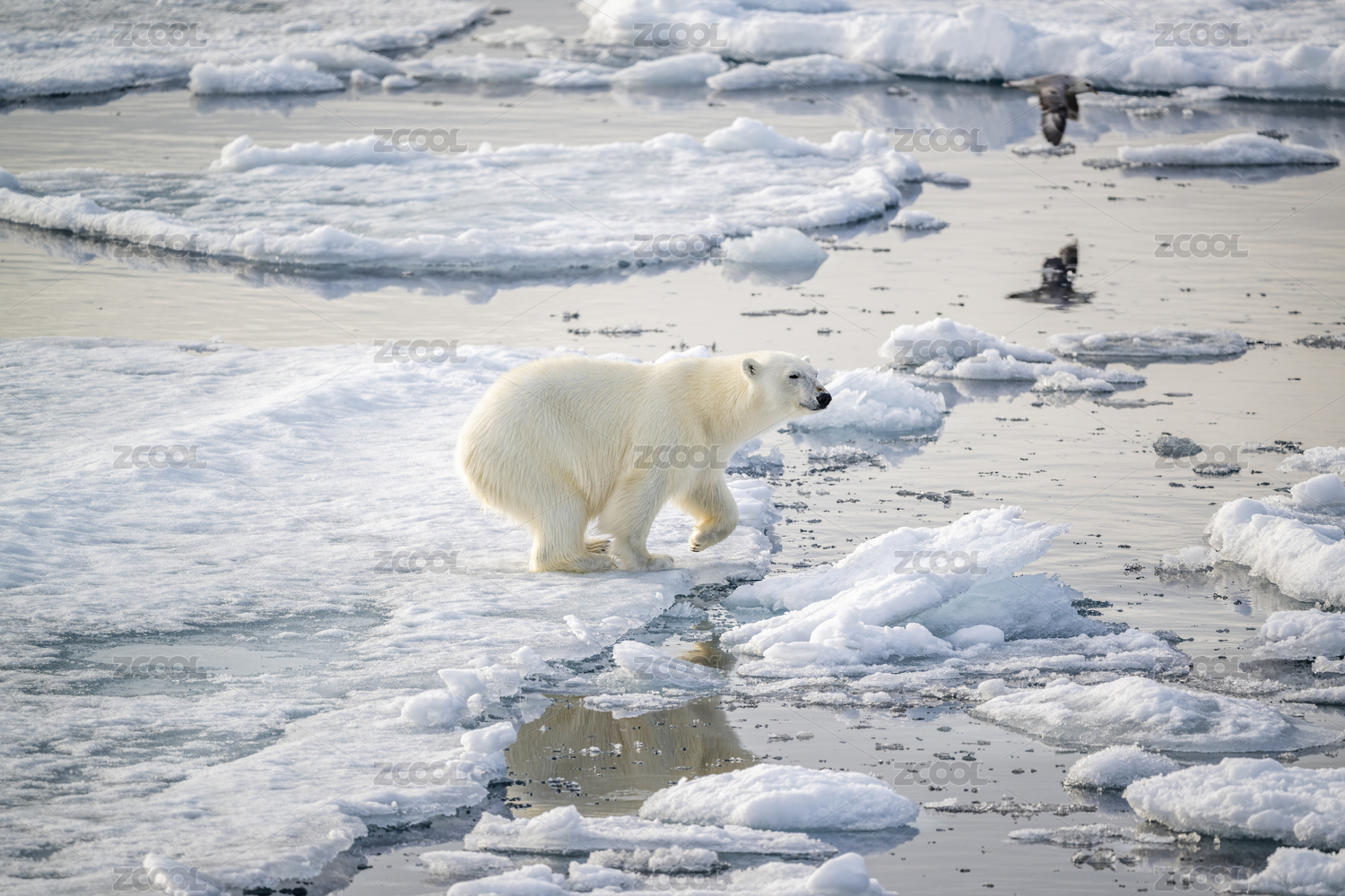 北極熊在冰面上行走