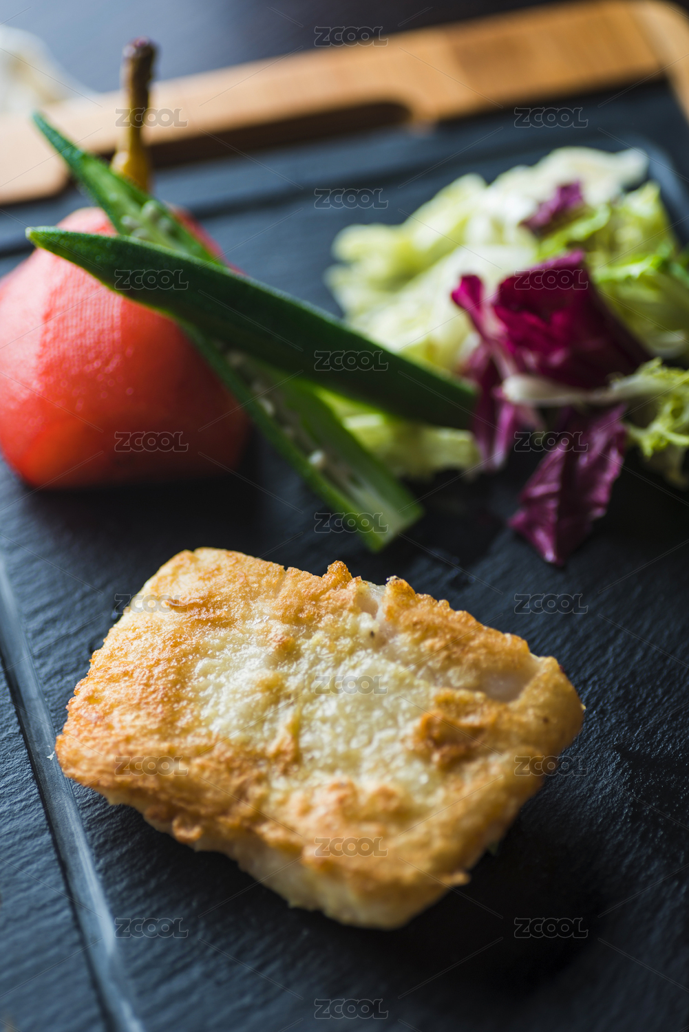 一盤(pán)烤鱈魚(yú)片