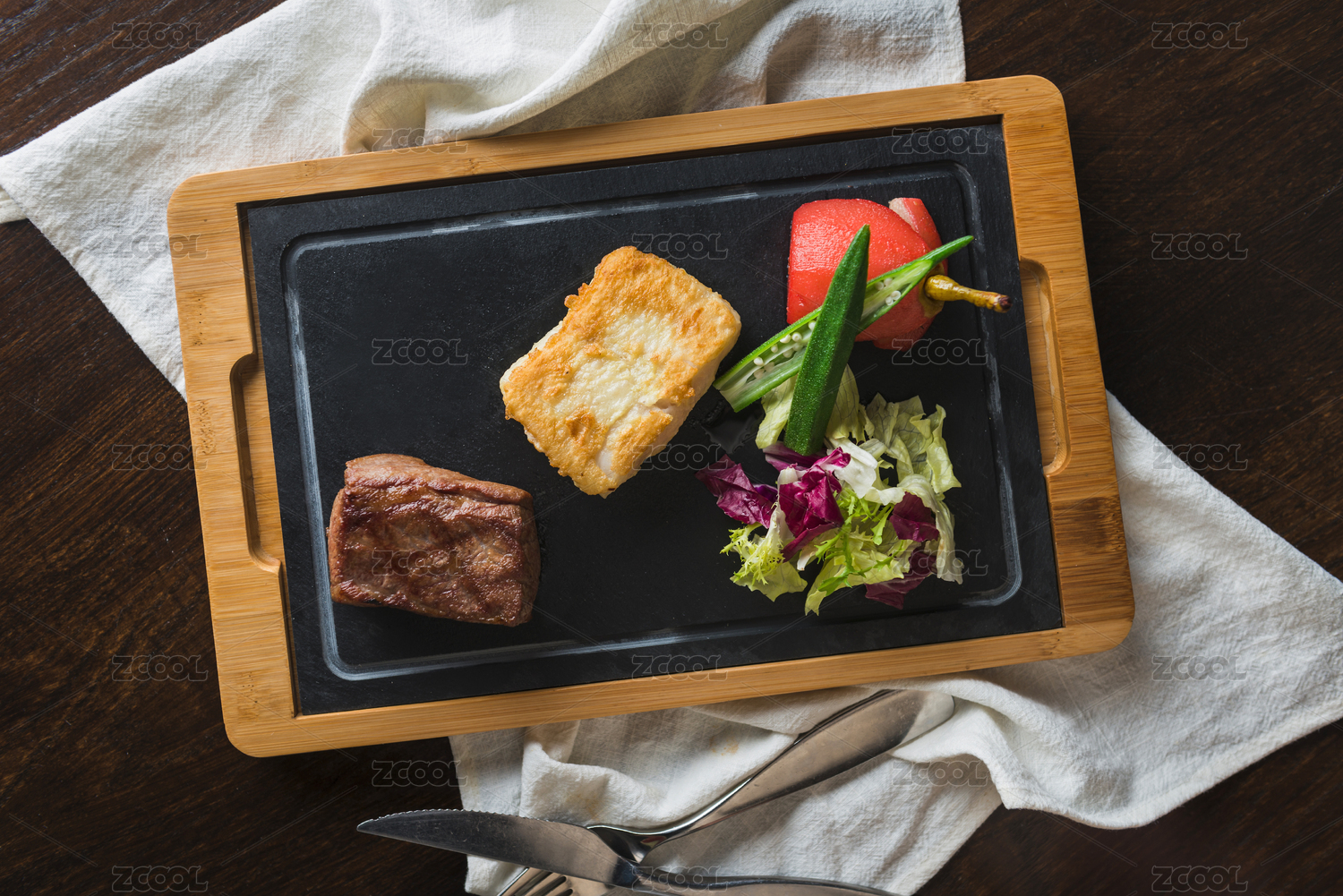 炭炙牛肉和烤鱈魚(yú)配紅酒釀雪梨