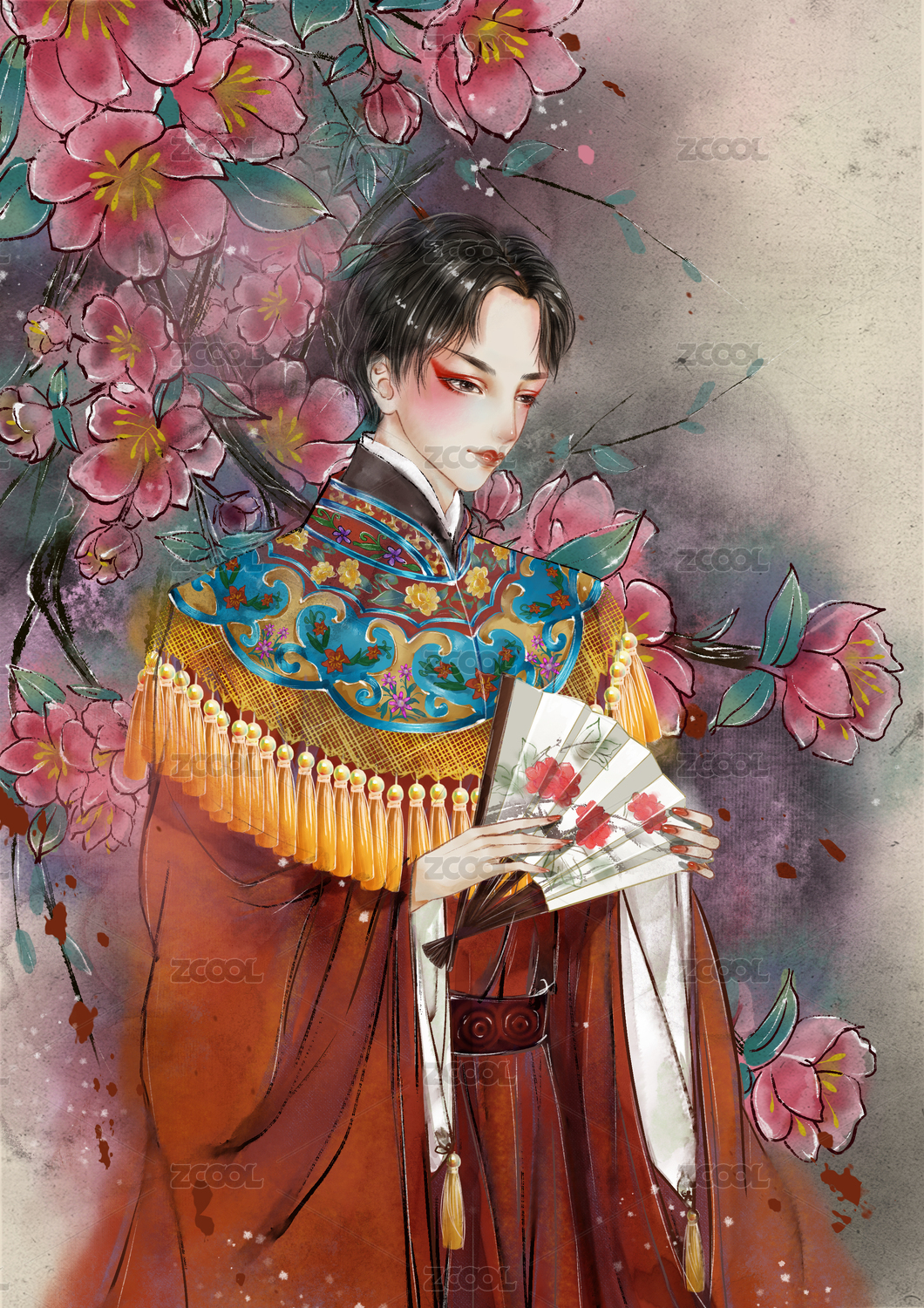 水墨風(fēng)男戲子立在花叢前