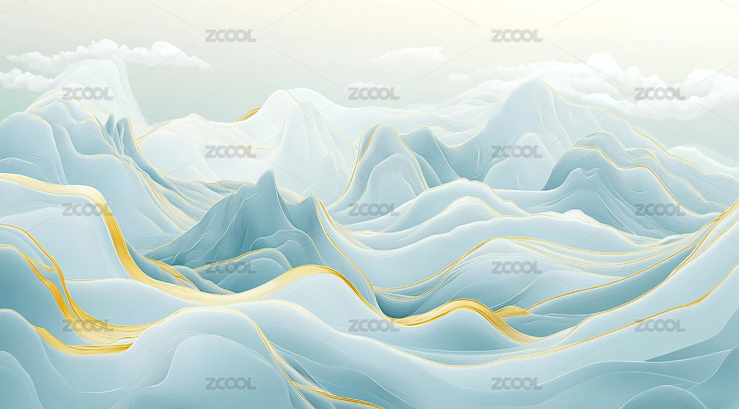 水墨風(fēng)山脈云海插畫