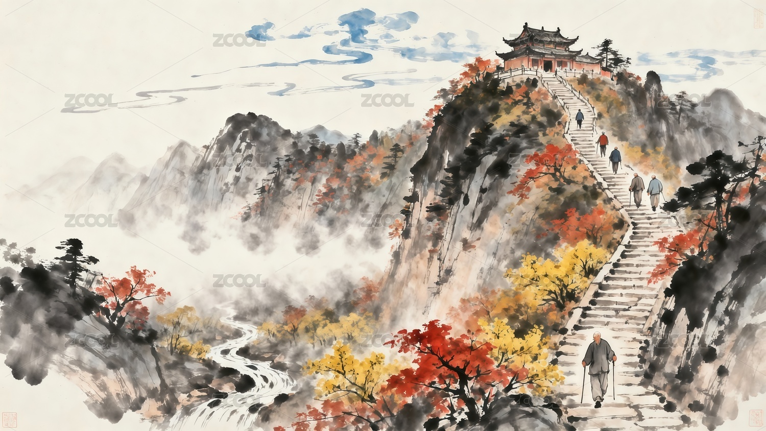 重陽節(jié)登高水墨風(fēng)格插畫