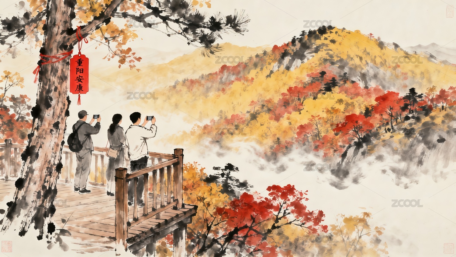 重陽節(jié)登高賞秋水墨風(fēng)格插畫