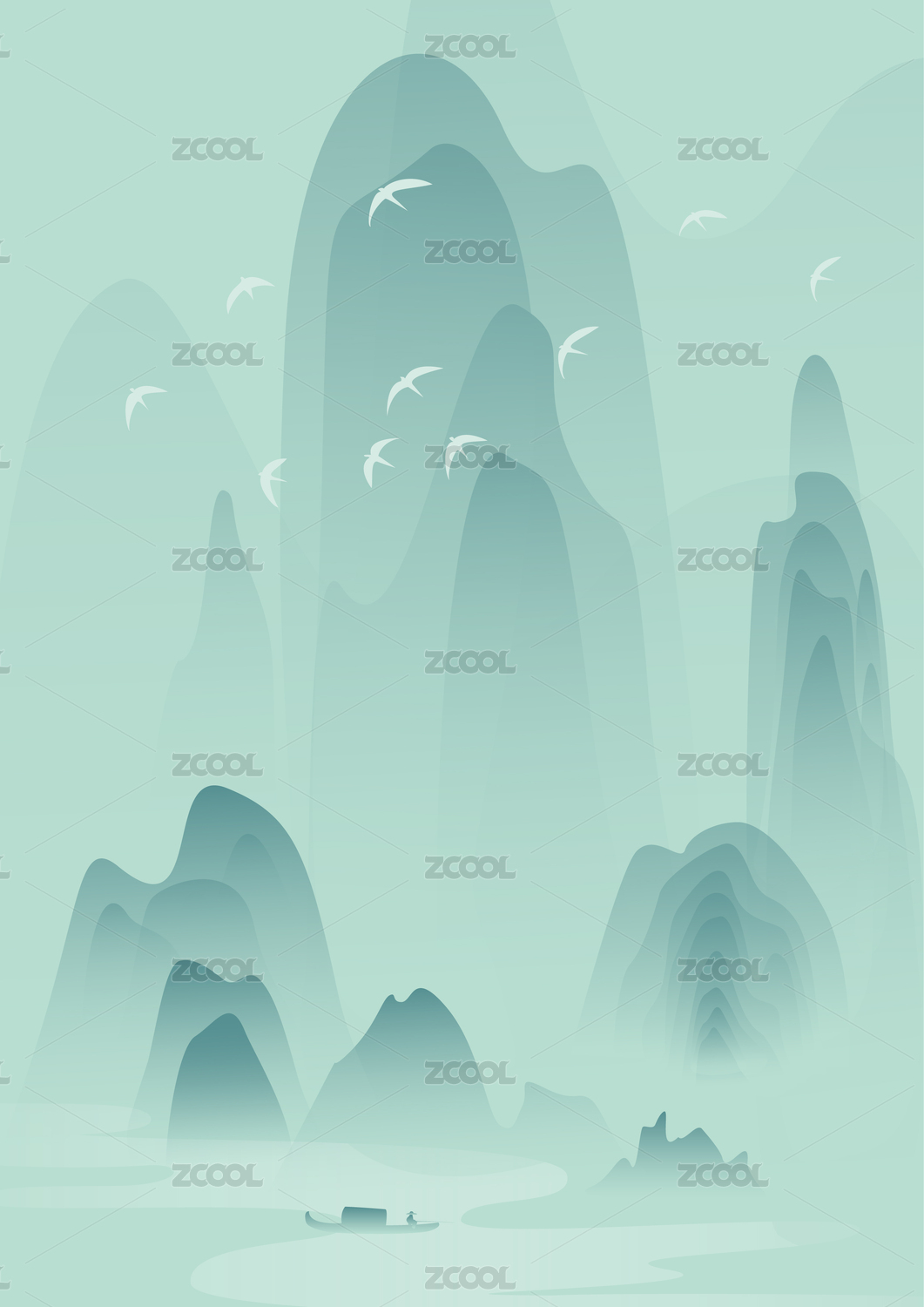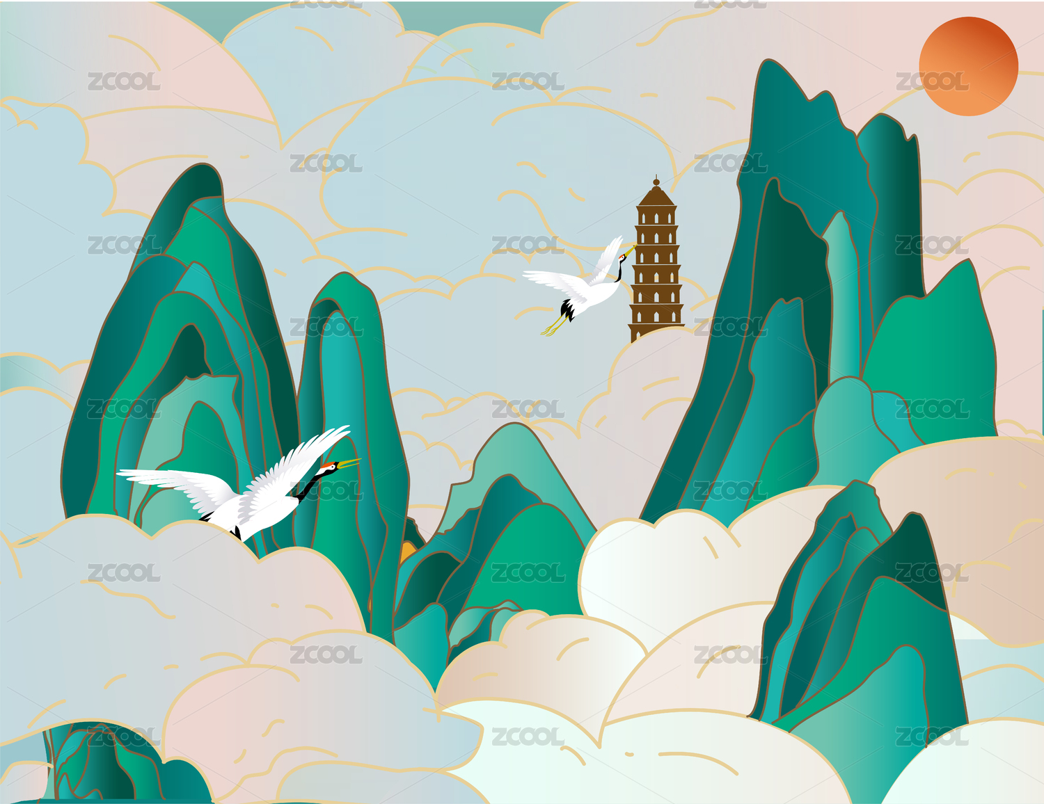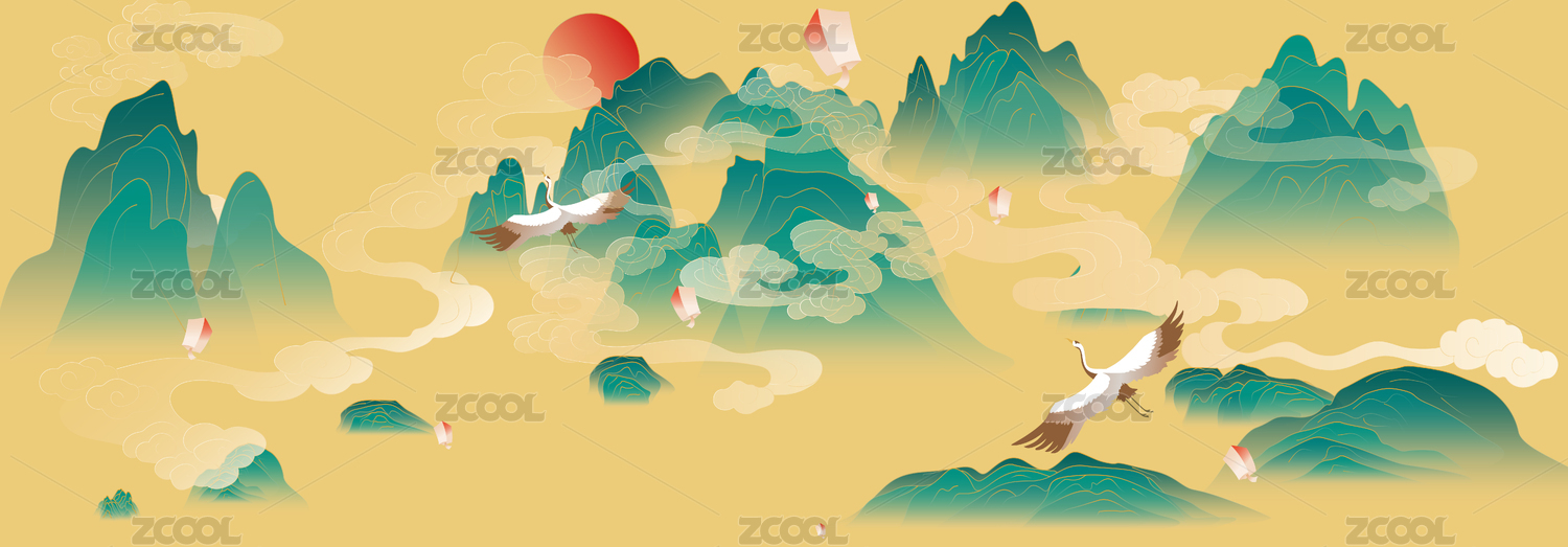 原創(chuàng)青綠山水祥云矢量圖免扣設(shè)計素材