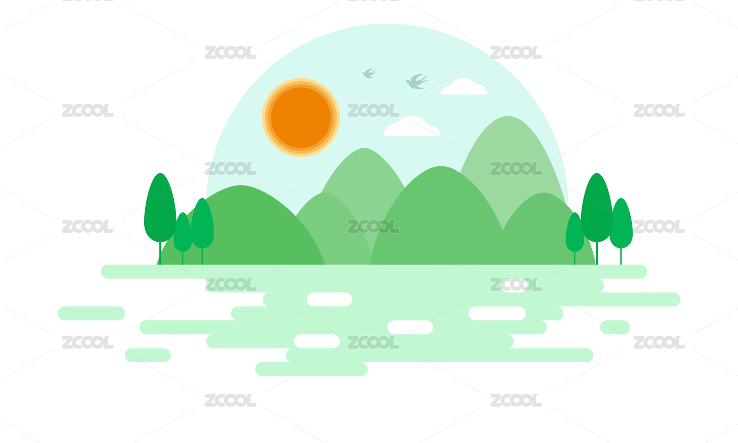 扁平風(fēng)格矢量山水插畫