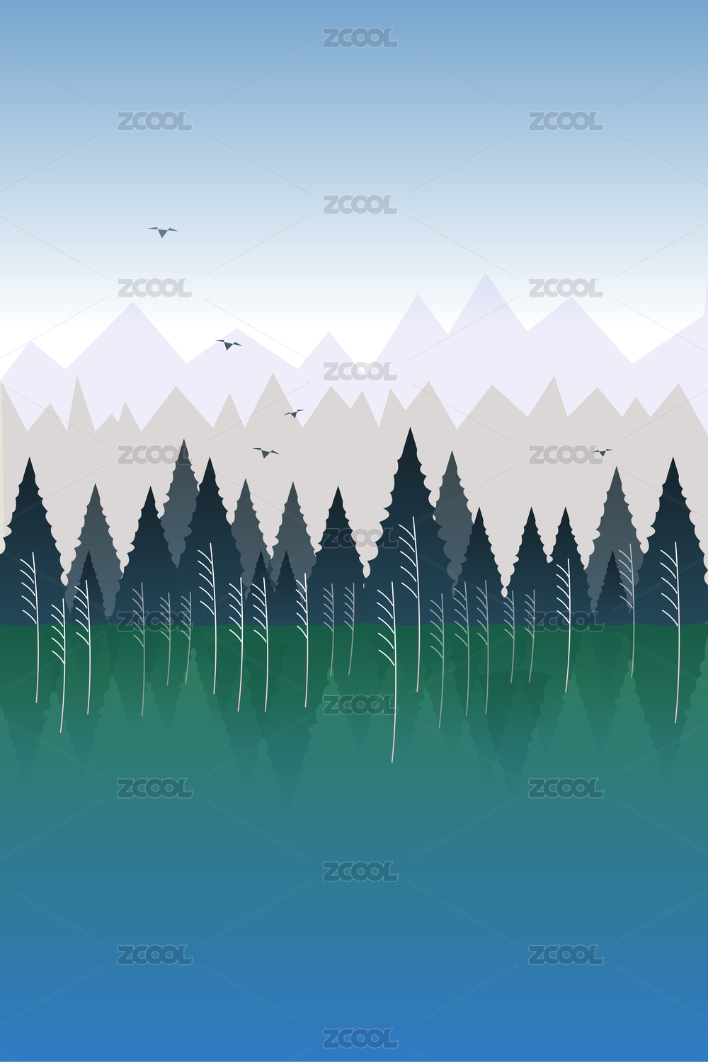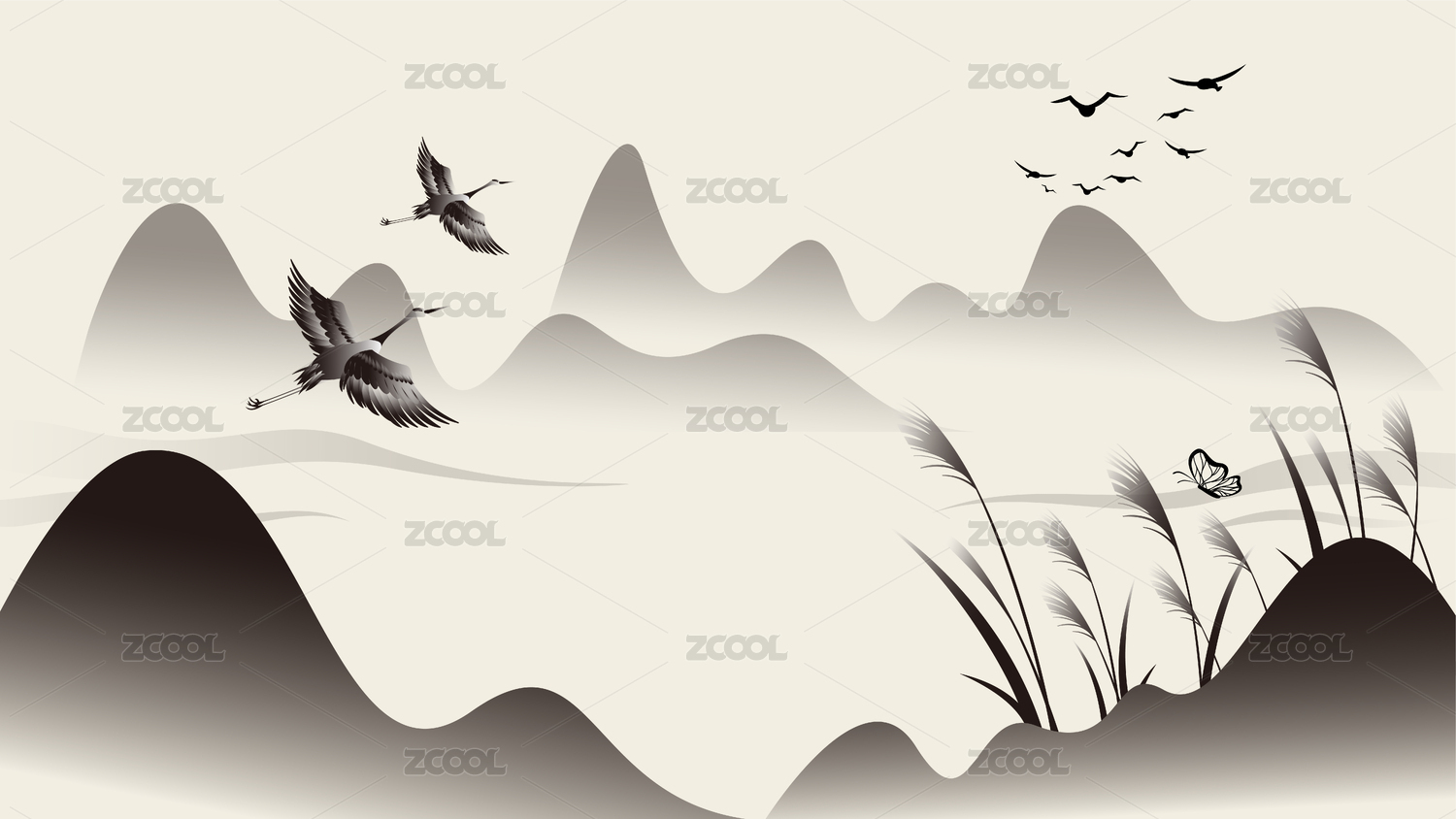 矢量山水飛鳥