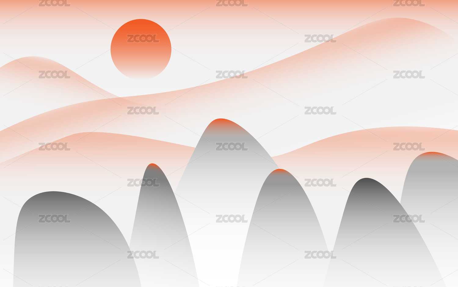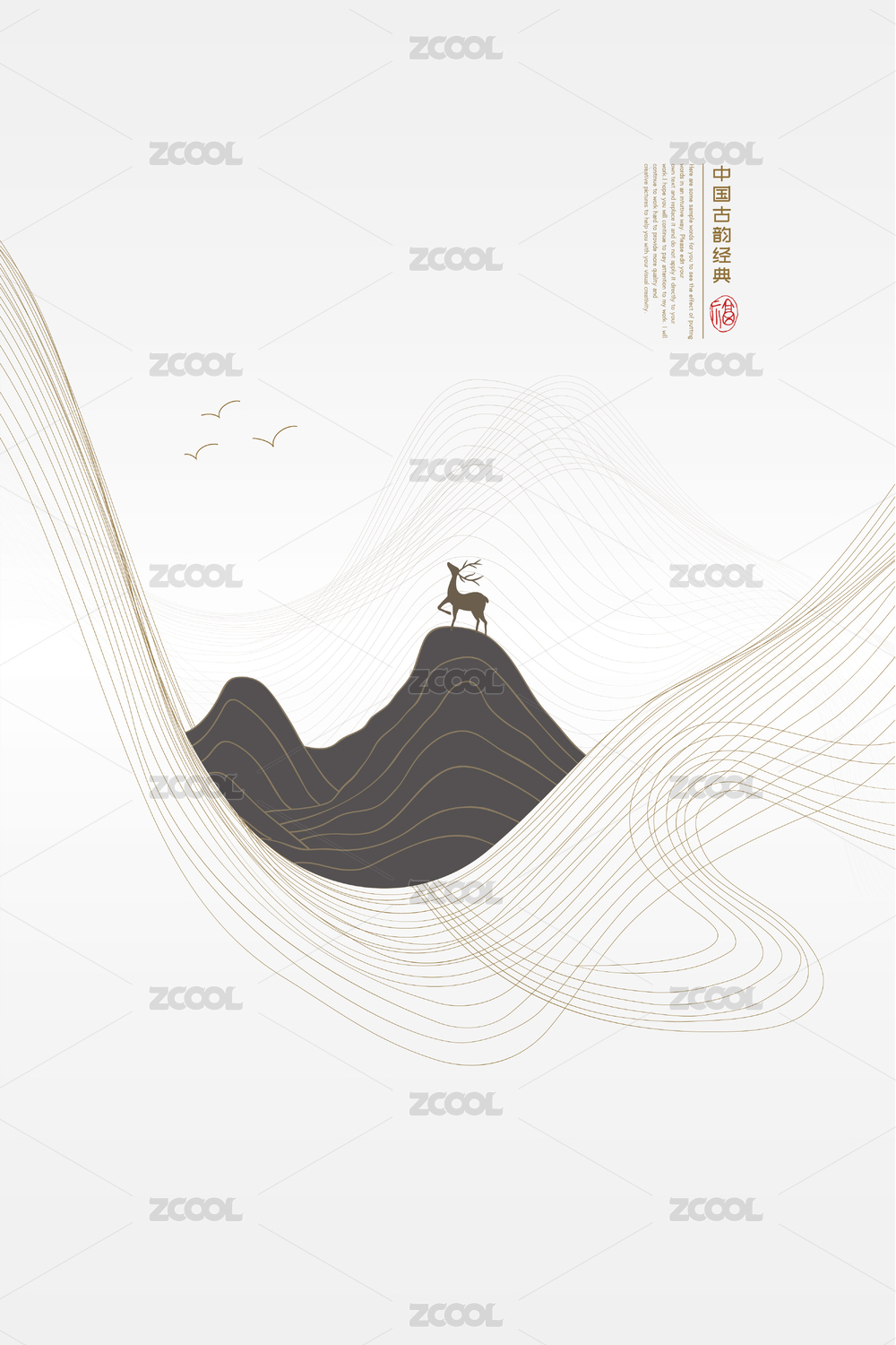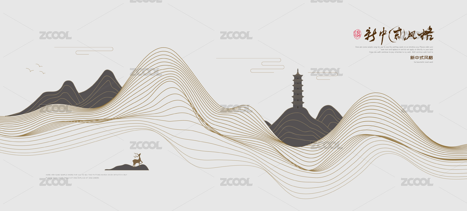 山峰麋鹿現(xiàn)代新中式矢量山水畫