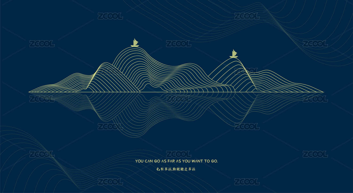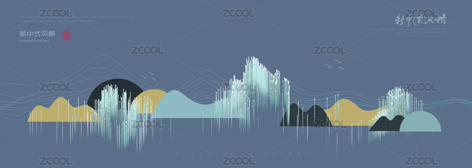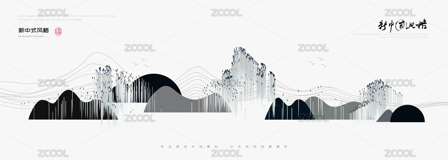 抽象線條現(xiàn)代新中式矢量山水畫