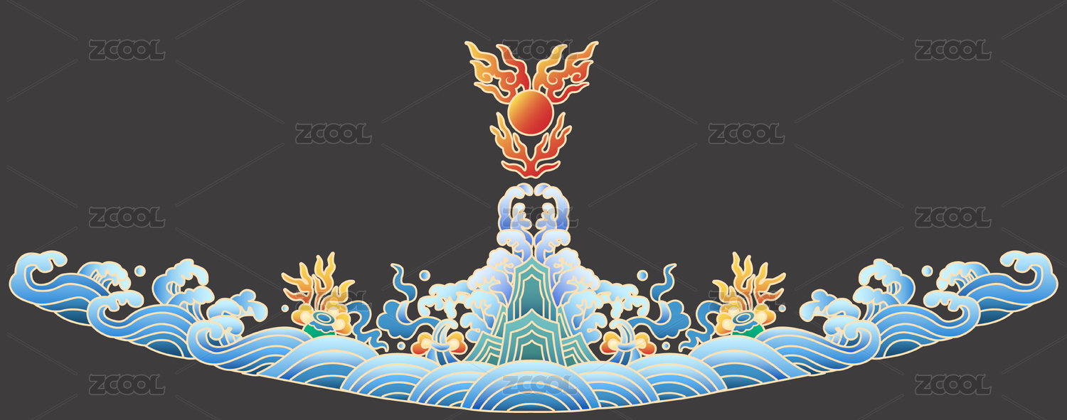 矢量山水海浪祥云吉祥復(fù)古圖案