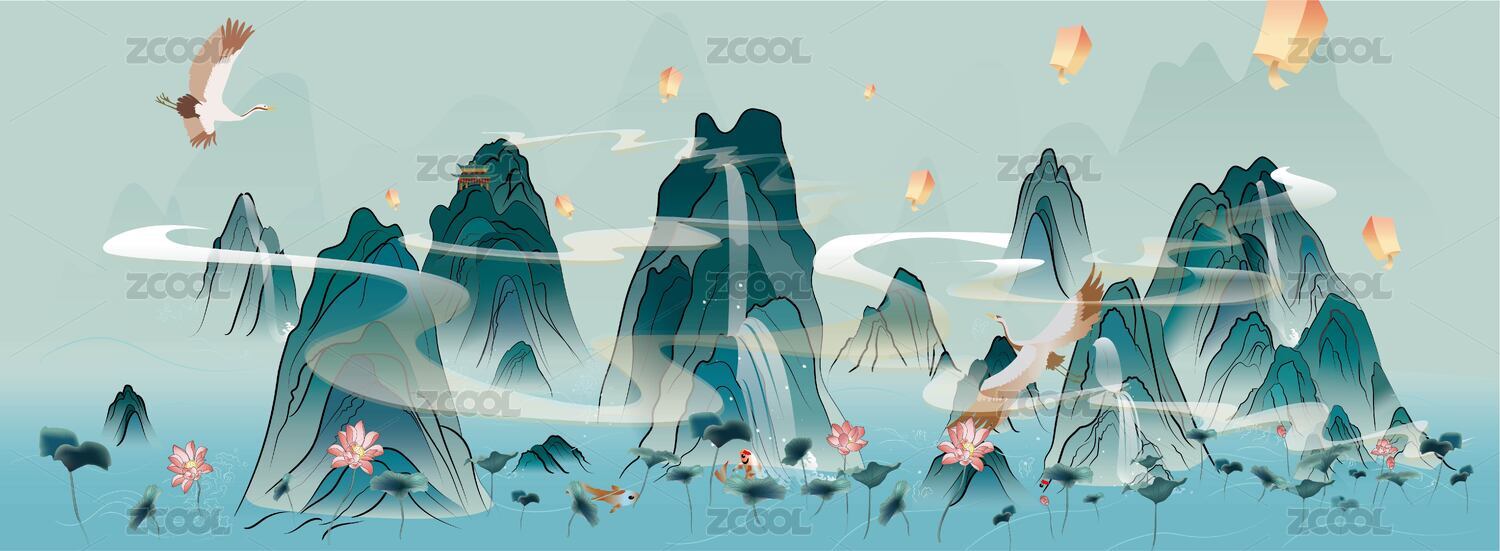 新中式矢量山水圖