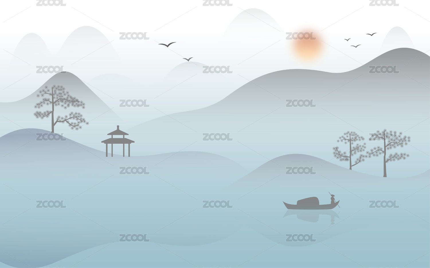現(xiàn)代新中式矢量山水畫