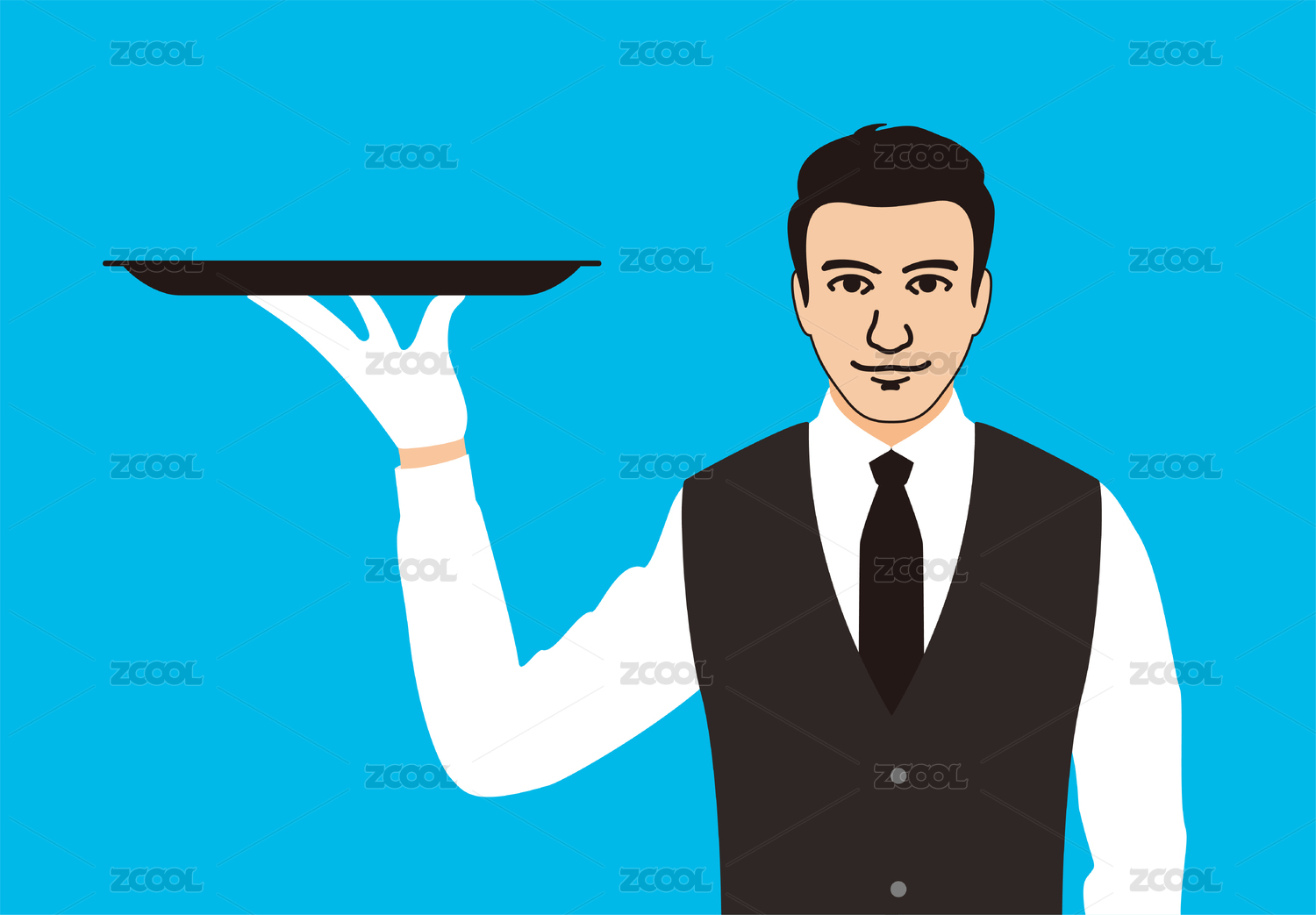 服務(wù)員拿著空托盤(pán) 概念
