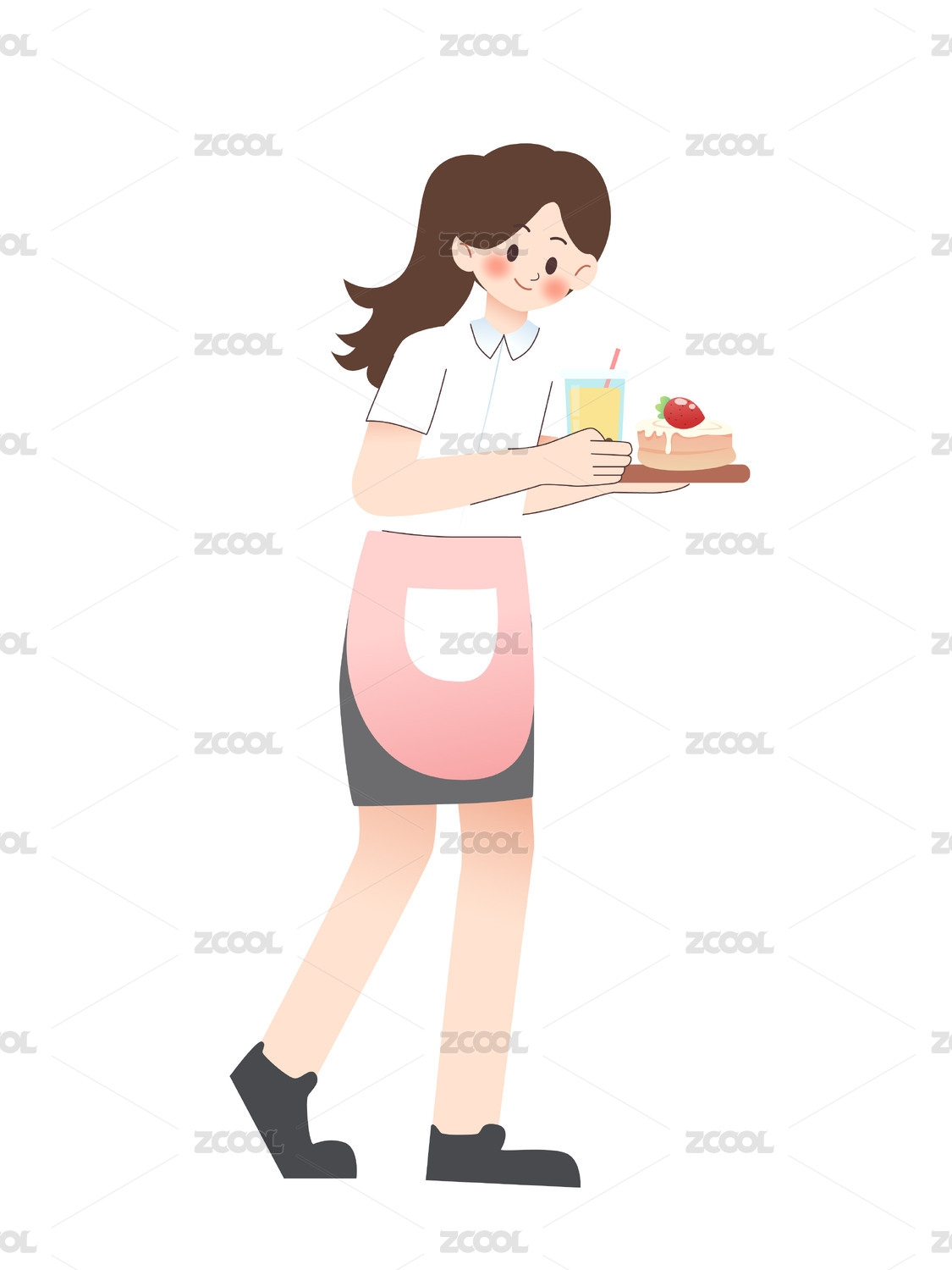 矢量插畫(huà)人物端菜的女性服務(wù)員