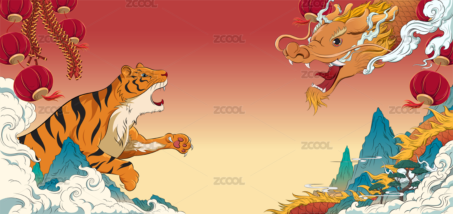 龍騰虎嘯迎新春國風(fēng)新年插畫