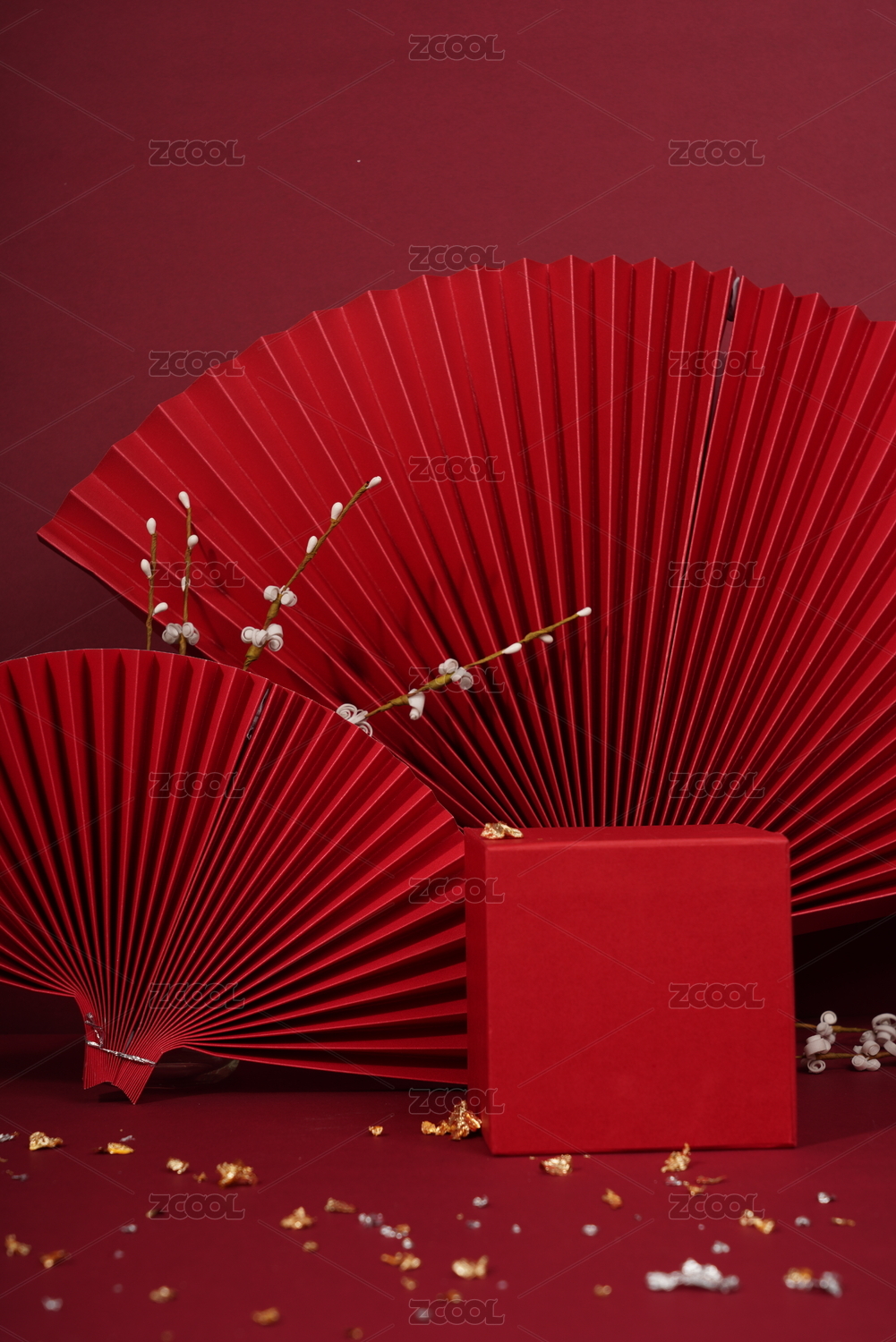 新年背景春節(jié)新春中國年紅色背景折紙扇