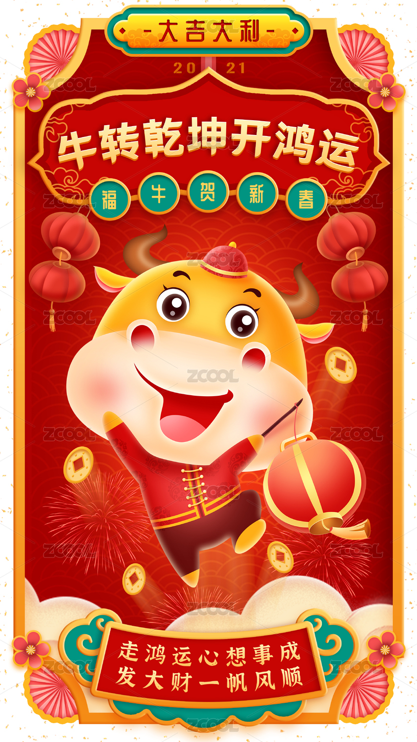 新春小牛拿燈籠