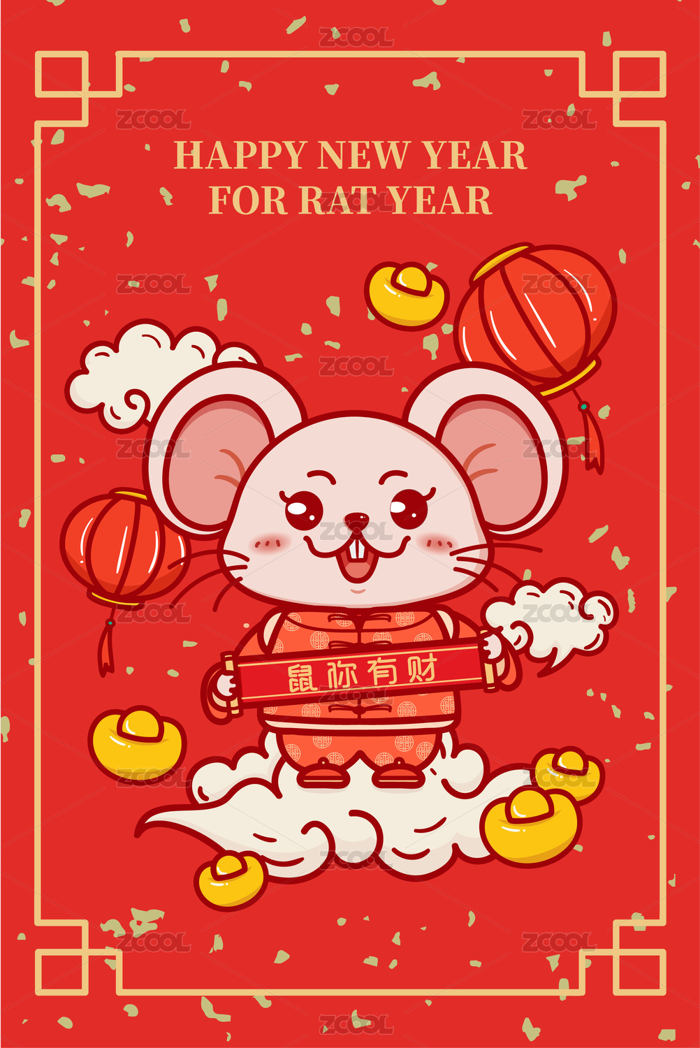2020鼠年新年鼠你有財新春插畫素材